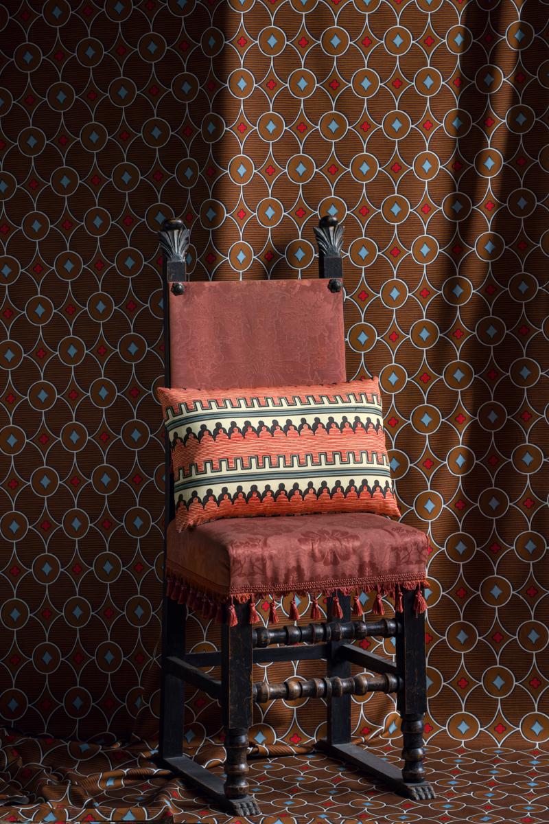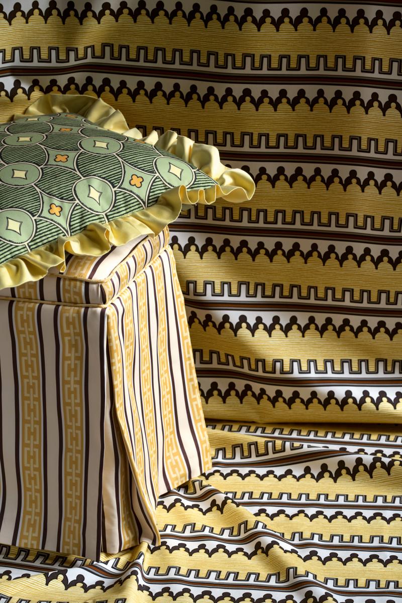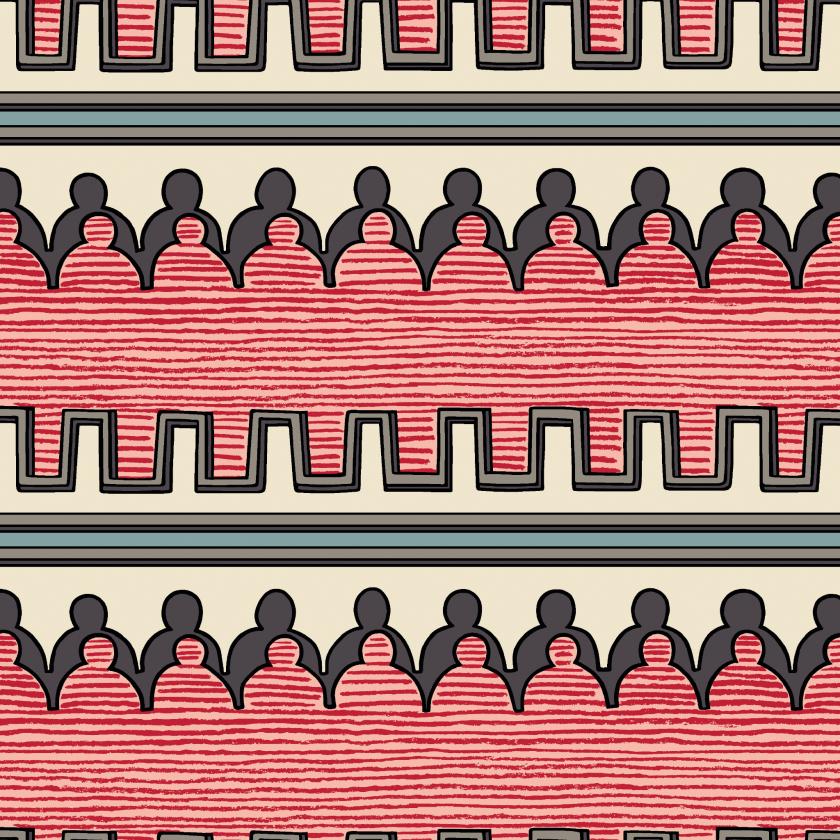 Sketches of castellated and gothic motifs, inspired by a folly in the grounds of Painswick Rococo Garden, Gloucestershire, another favourite of mine. It was a hot summer's day when I noticed the castellated roof on this folly; this design materialised before my eyes immediately. Print on cotton ground. Suitable for upholstery.