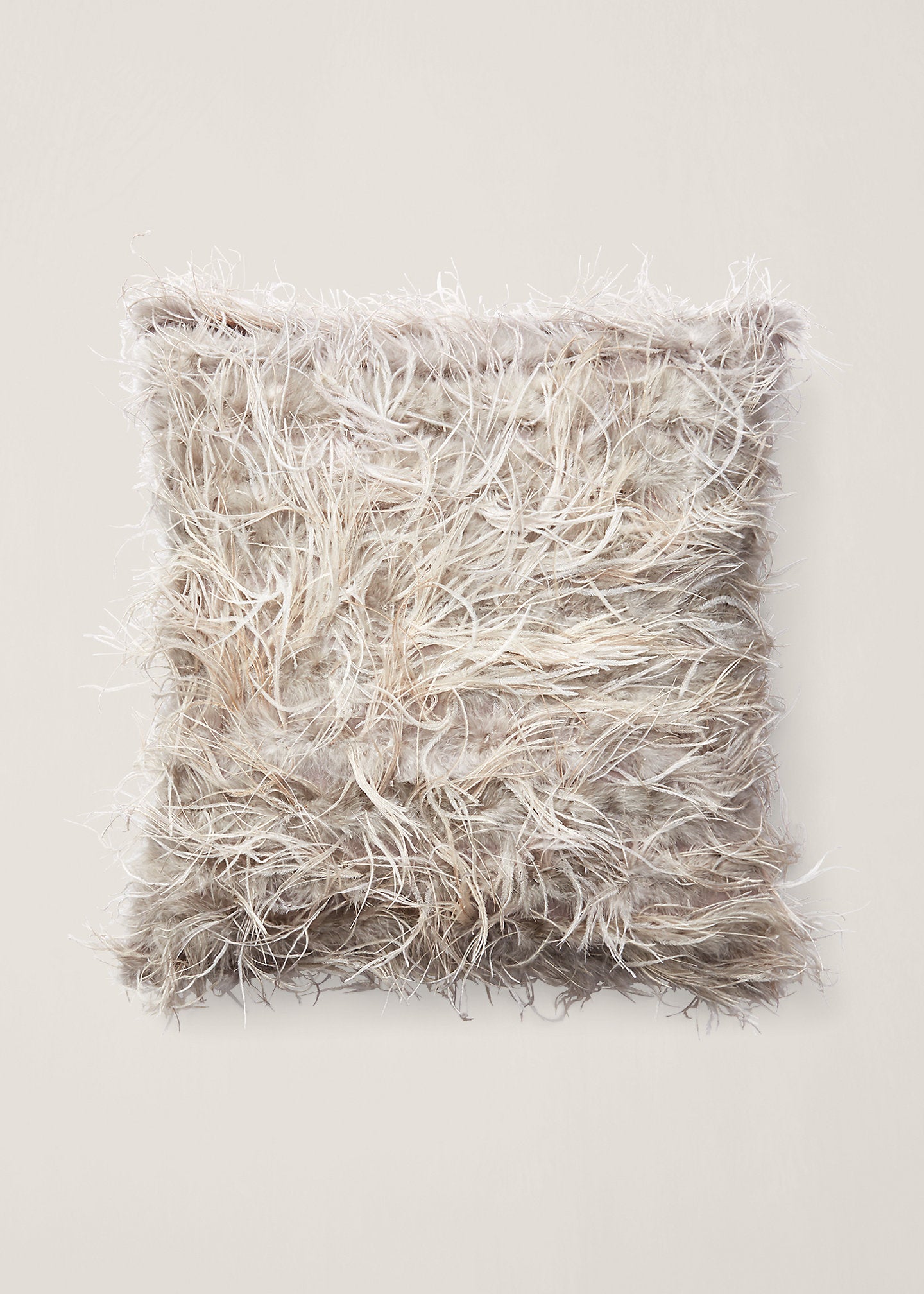 Luxurious composition defines the Harwood, an elegant accent piece with contemporary style. Genuine ostrich features adorn one side of this softly textural throw pillow, while the reverse is crafted from a blend of wool and cashmere.