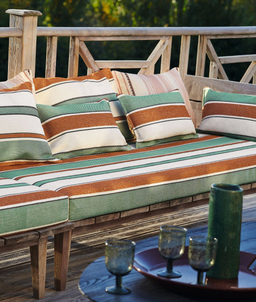Famous for its houses nestled against the mountainside, its sun-drenched squares and its maze of alleys, Sorrento has inspired a fancy stripe produced using a blend of fibres and colours. Woven using a bouclé yarn with changeable effects, it reveals a variety of textures and is highlighted by a beautifully modern black border. SORRENTE coordinates with the RAVELLO fabric and is available in 4 colours.