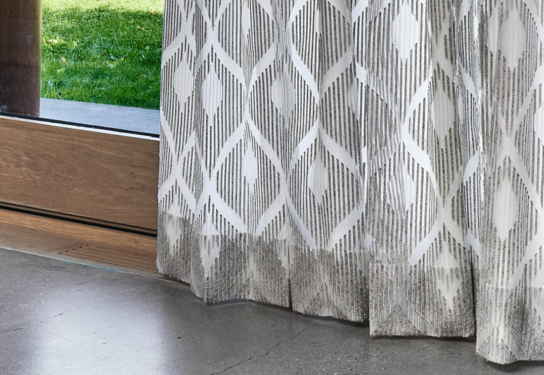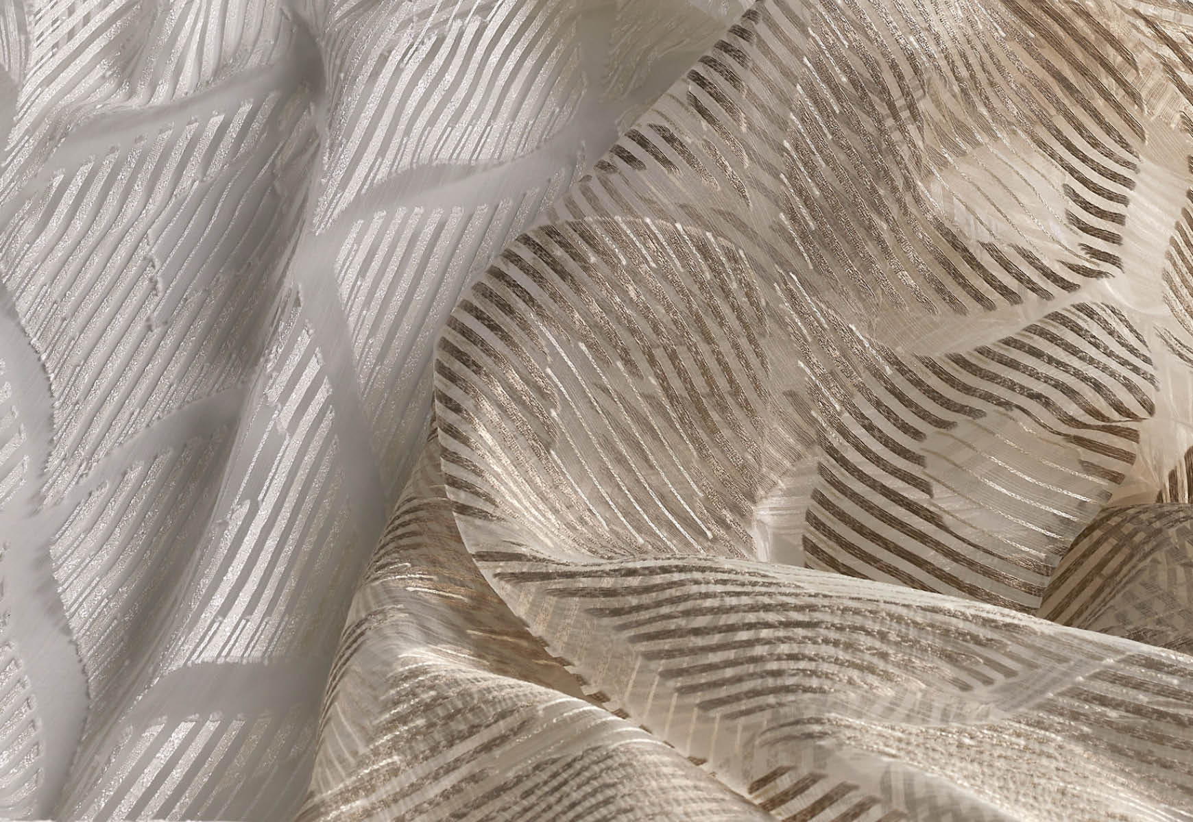Emir presents a large-scale ogee motif woven in a semi-sheer fabric that elegantly diffuses light and creates visual depth. With its graceful pattern and subtle luminosity, it’s crafted for window treatments and feature panels that demand presence without overpowering the space.