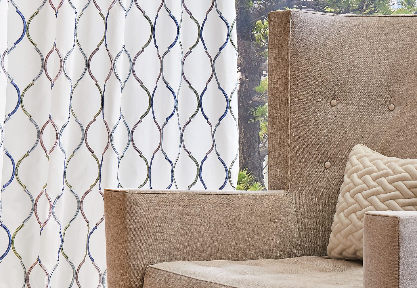 With playful embroidery and fringe accents, Fortress brings lively texture and character to chairs, cushions or accent drapery. Available in cheerful colourways, it’s ready for stylish, relaxed spaces.