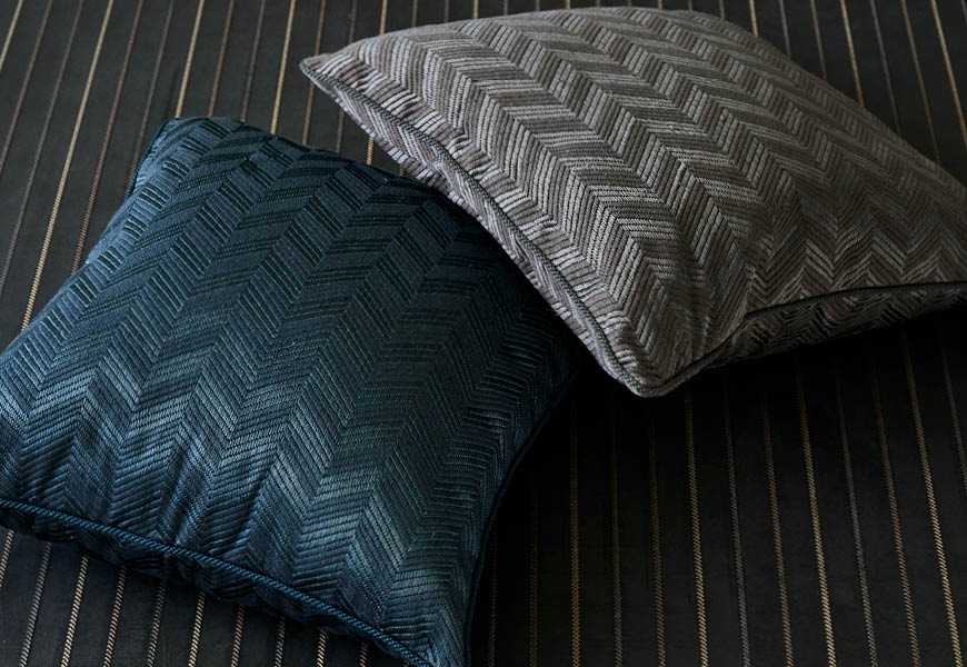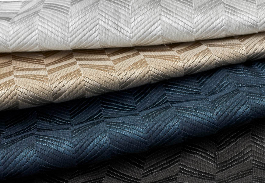 Gratitude features full-coverage embroidery in rich tones on a cotton-blend ground—crafted for medium upholstery and refined interiors