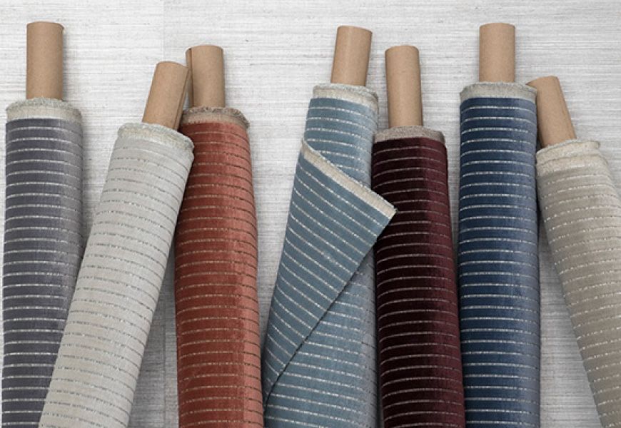 Weitzner Fabric.Grayson features plush velvet stripes and a smooth hand—designed for statement upholstery with refined style.
