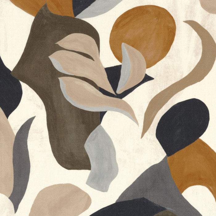 “Air de fête” is a living spectacle, a poem of shapes, inspired by fragments of plants or an “haute couture” dress. Enchanted by the Valentino catwalk show of Autumn-Winter 2022, our stylists have interpreted it in paint. The foliage is symbolised by cut-out shapes and each petal is stylised. On a linen cloth, in deep Earth shades, the lightweight shapes move and carry us away in a lively botanical whirlwind.