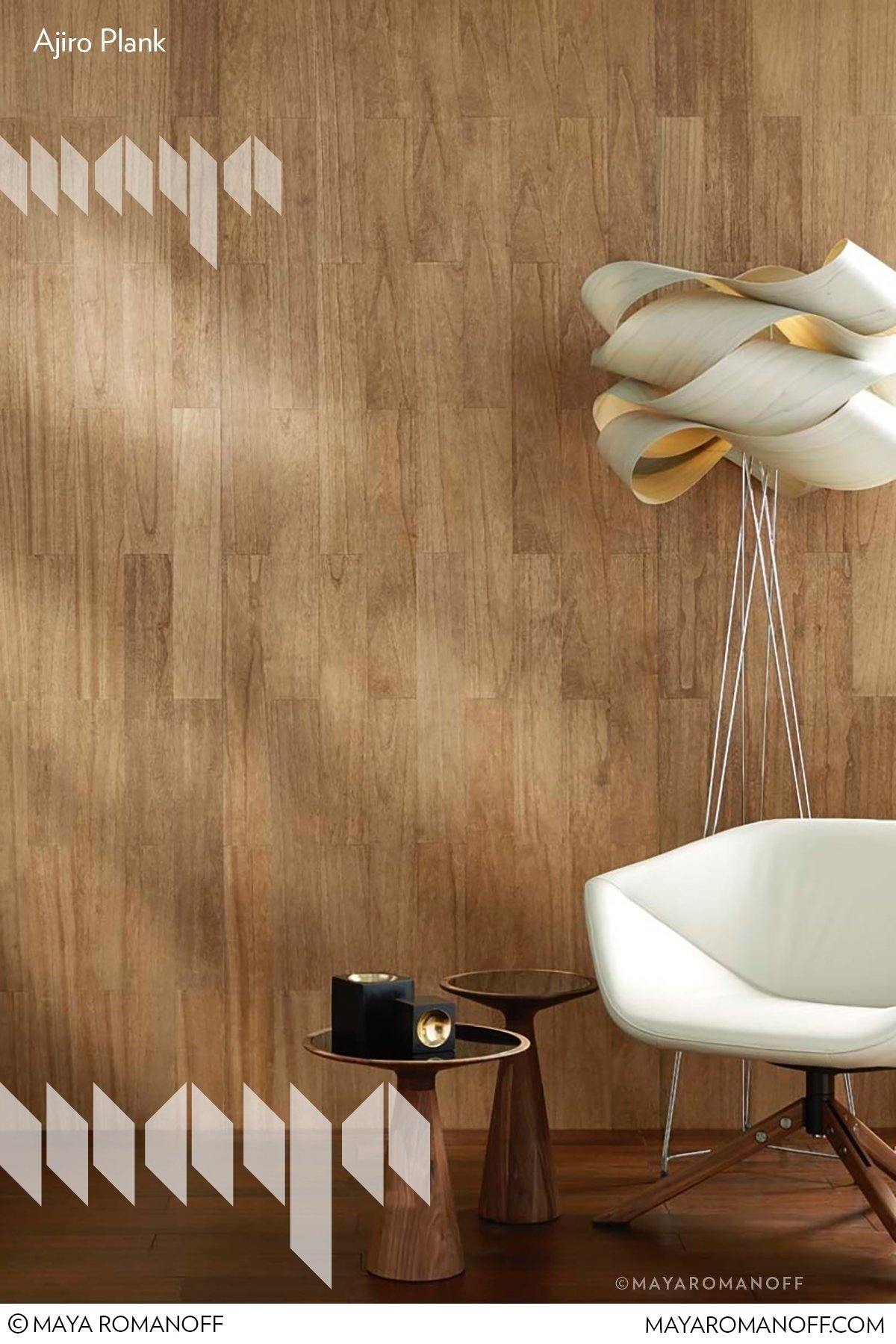 Ajiro Plank is a linear, architectural wood veneer colored by hand in Maya's Chicago studio. Micro-thin wood hand-inlaid on paper backing, Plank can be installed vertically or horizontally for a virtually seamless installation.