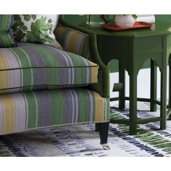 This cotton and jute woven stripe is woven celebrating the traditions of weaving in India but with all the practicality of contemporary textiles for today. The name William has selected has many meanings but one resonates which is 'unrestricted and unlimited' which describes this stylish striped woven fabric perfectly. In two colour combinations for statement upholstery, cushions and blinds as well as other interior applications.