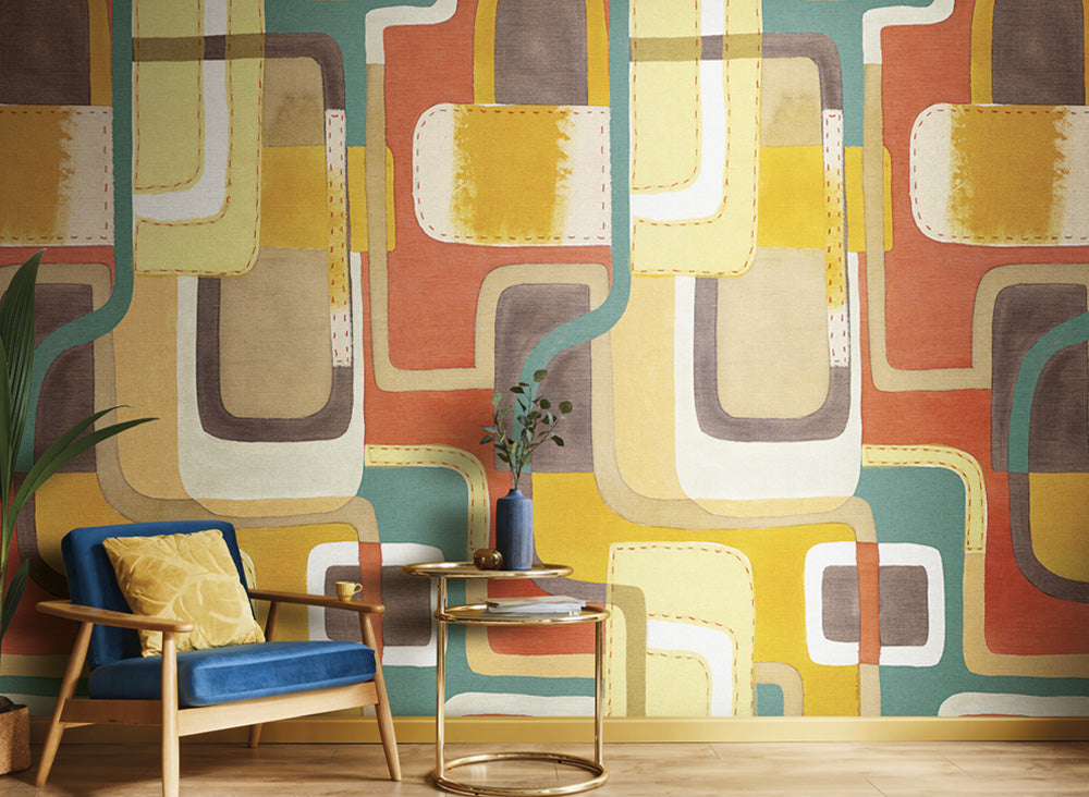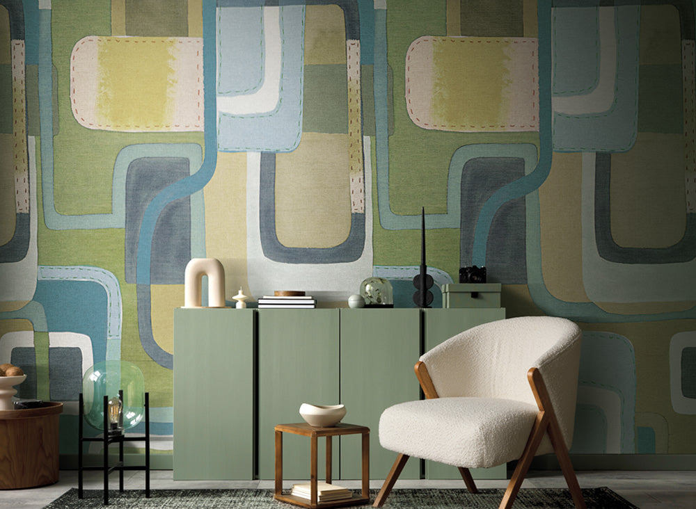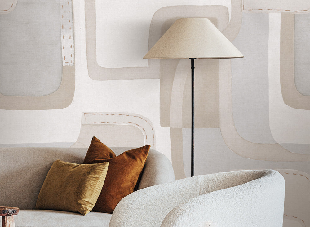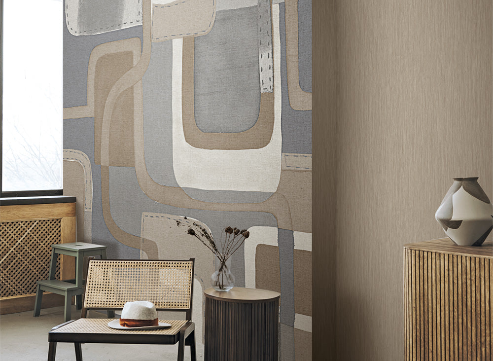 Alma by Jannelli&Volpi is an abstract mural in grey and brown that evokes memories of travelled roads through expressive shapes and lines.