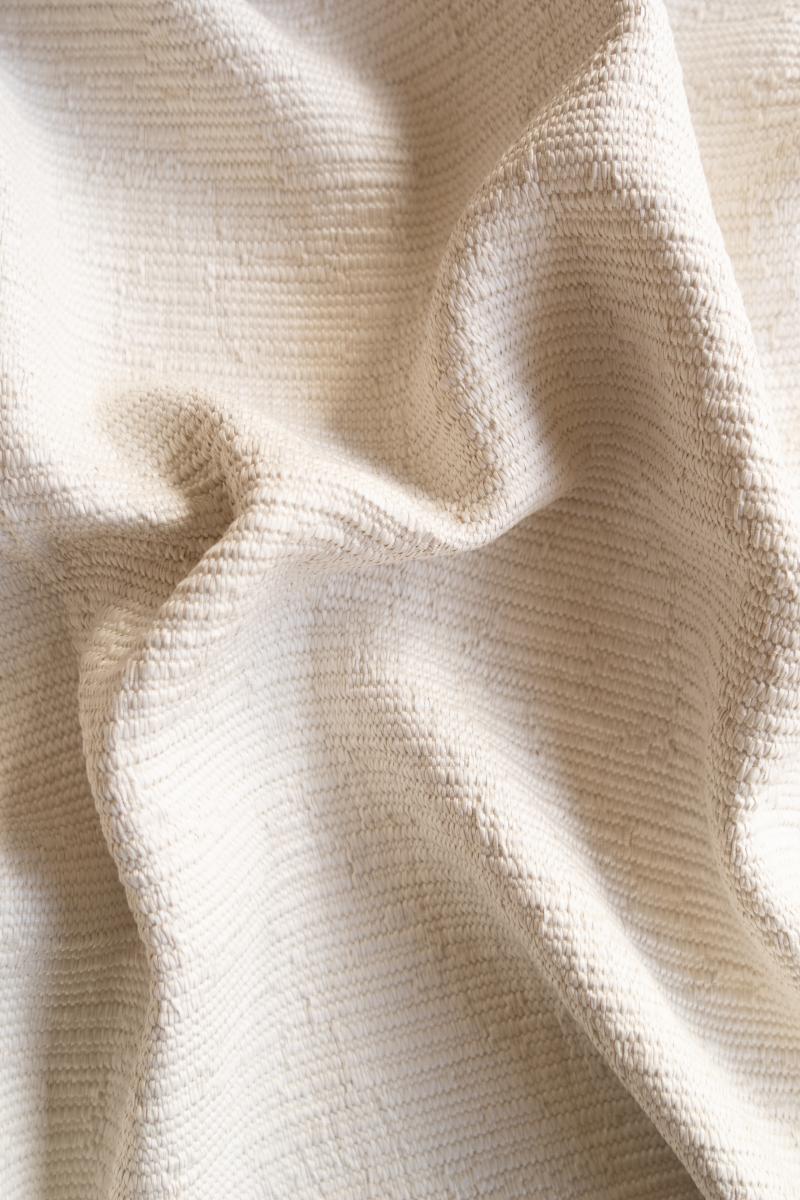 The use of raffia plaited with cotton references ancient techniques with an ethnic feel. In Aloha the jacquard pattern, deliberately interrupted and fragmented, creates a sort of patchwork effect and an irregularity in the style of a handmade fabric. Piece dyed, it is suitable for heavy use.