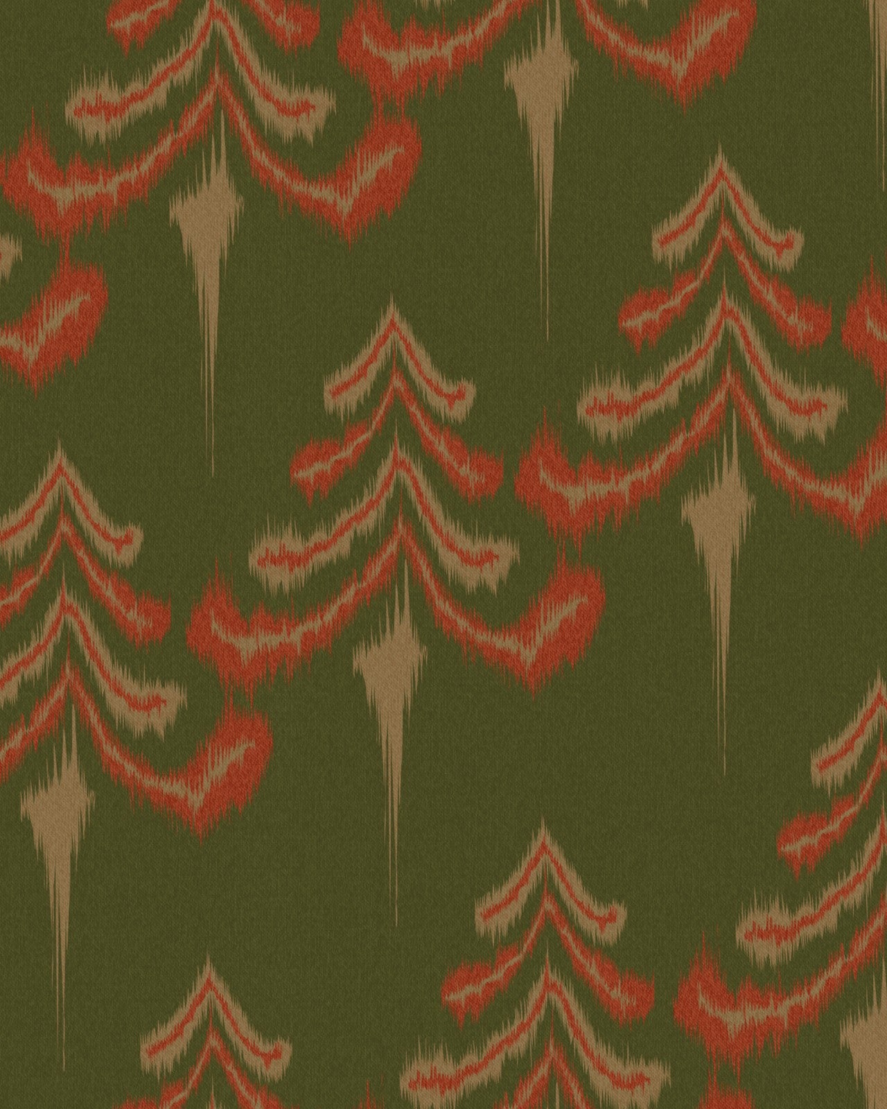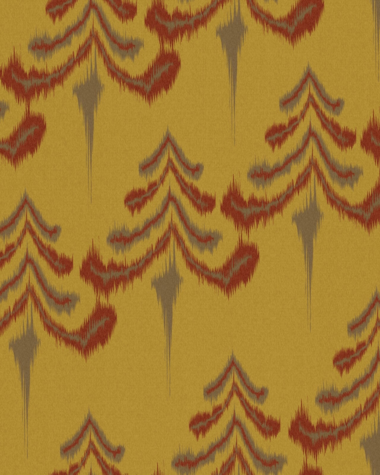 Though stylised with an ikat-like brush stroke, there’s no doubt that this pattern represents a forest packed with firs. High on the mountainside, in regimented rows, these evergreen trees and their sloping branches are as ubiquitous in the Tyrol as skiers and snow.