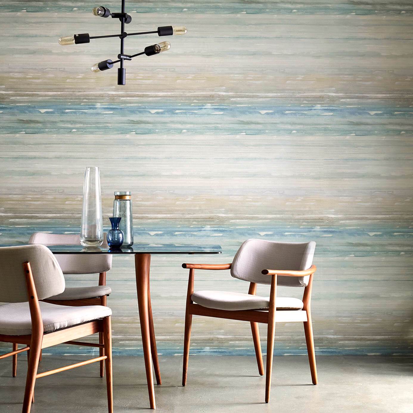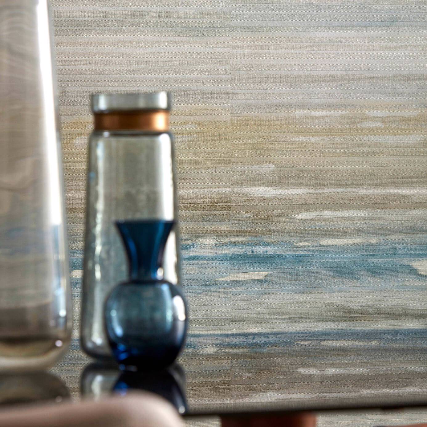 Our Elements design is a wide-width wallpaper with a misty ethereal undertone achieved by the movement and twists of colour which softly graduate in a horizontal ombré. The organic stripes of this paste-the-wall vinyl are created by layering then crushing tissue paper and is enhanced with a newly developed raffia emboss exclusive to Anthology. Available in harmonious colourways.