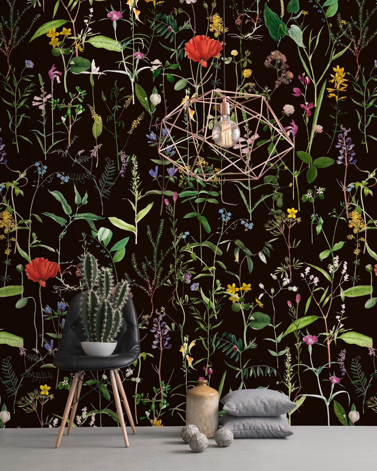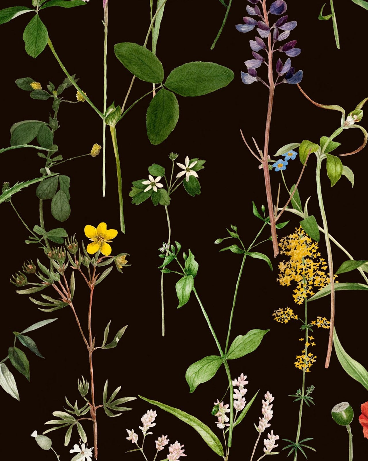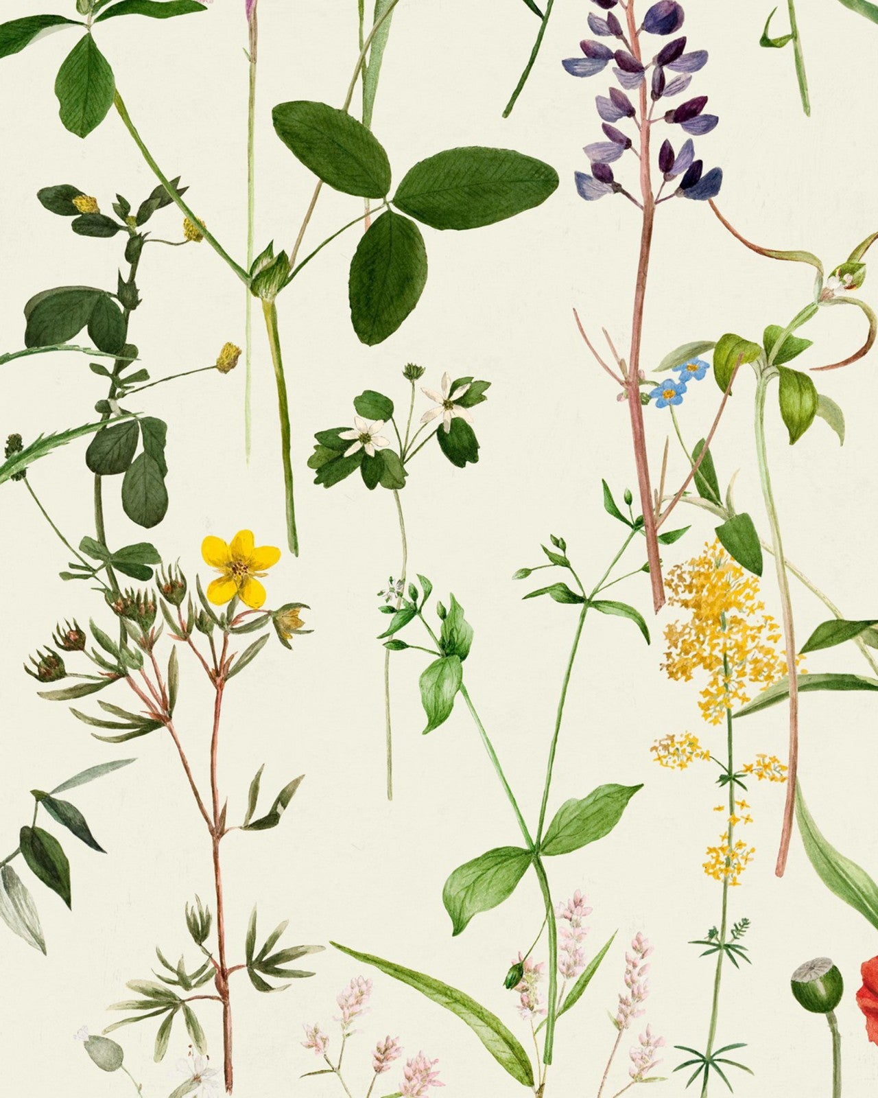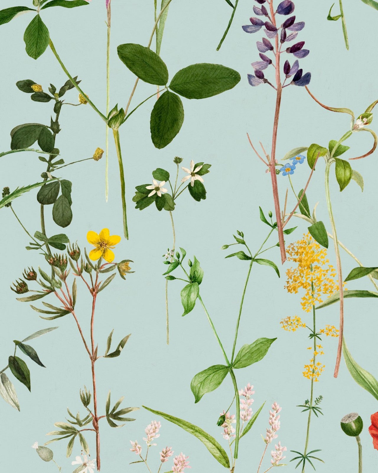 A floral gathering of vintage illustrations are summoned in the AQUAFLEUR Wallpaper design, highlighting each one of the delicate flowers and plants against a white, aquamarine-blue or anthracite background. Create a wall full of colors and joy with this design printed over 3 rolls, for an endless blossom feel. From poppy flowers to cornflowers and bluebells, the layout is filled with lively colors but delicate shapes of all the thin and elegant wild flowers.