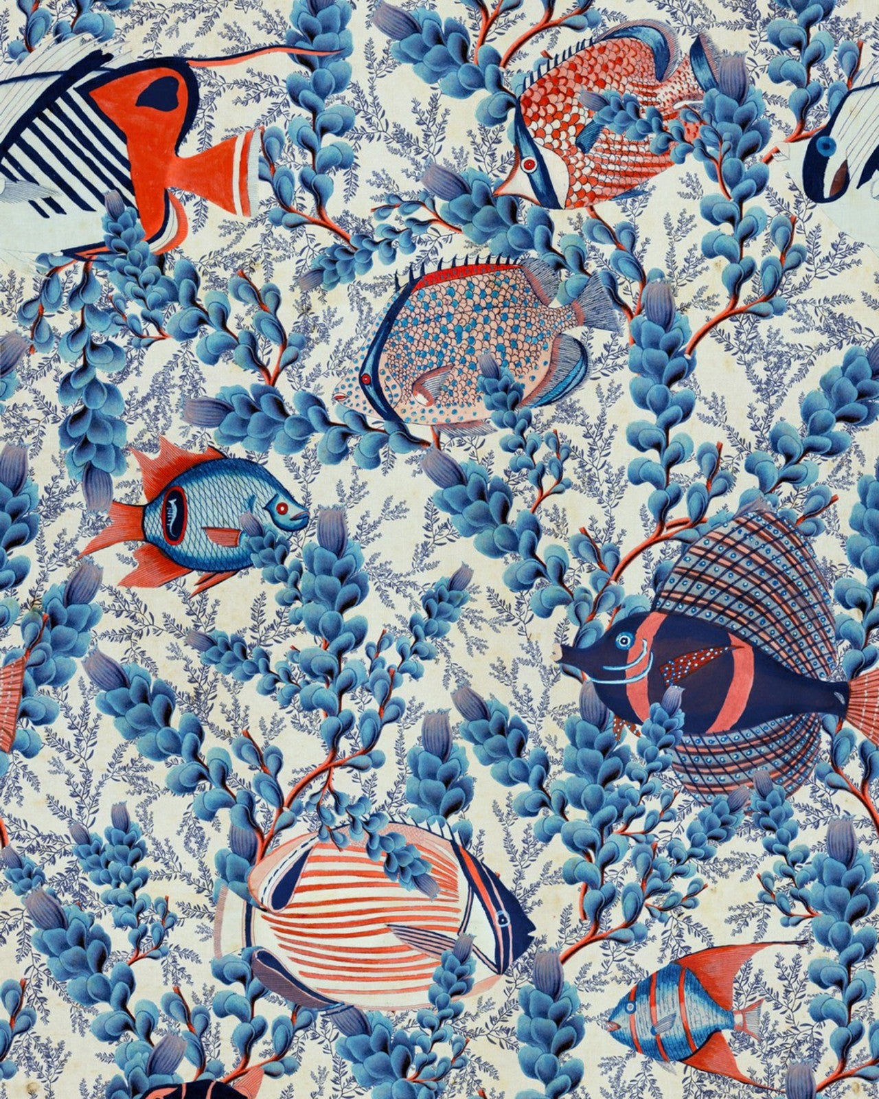 Splendid corals, parrotfish and tender seaweed come together in the luxuriant pattern of the AQUARIUM wallpaper. Adding charm and joy to any space, the design beautifully traces the shapes and colours of intriguing fish species, encountered on a sun-blessed holiday somewhere in the Mediterranean Sea. Available in two versions: polychromatic or monochrome in blue.