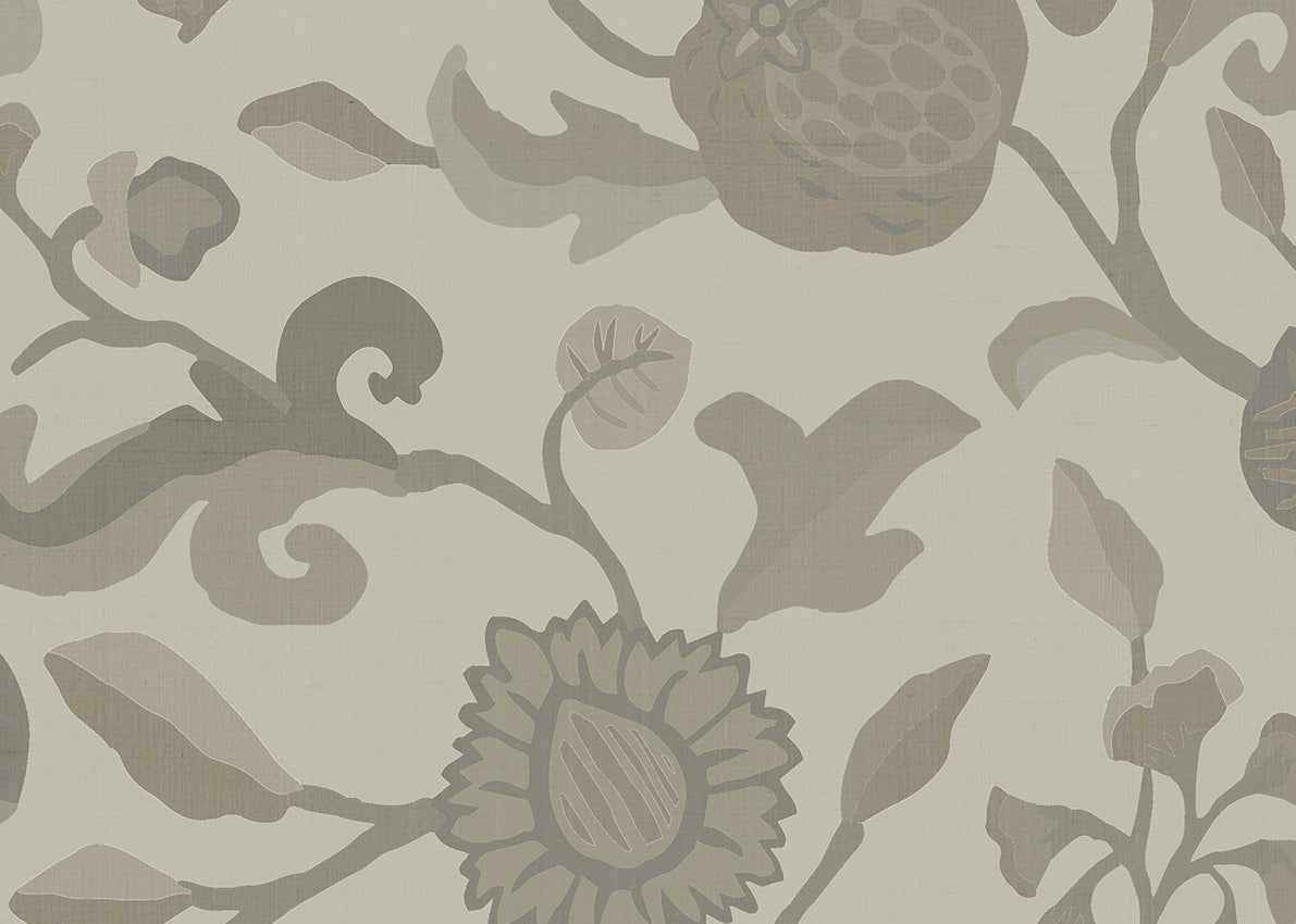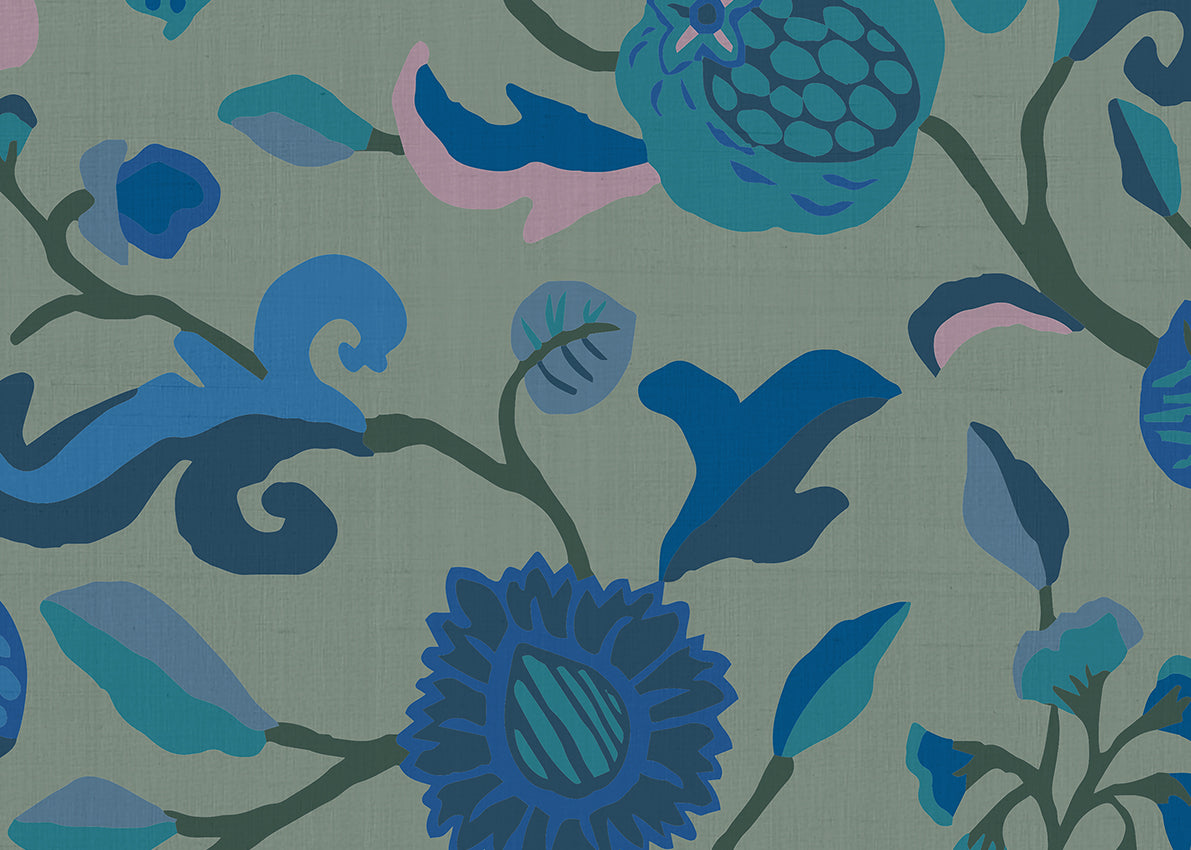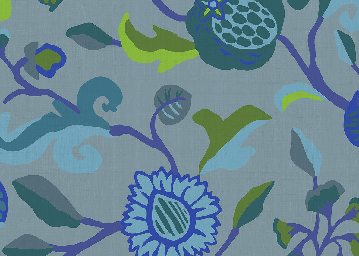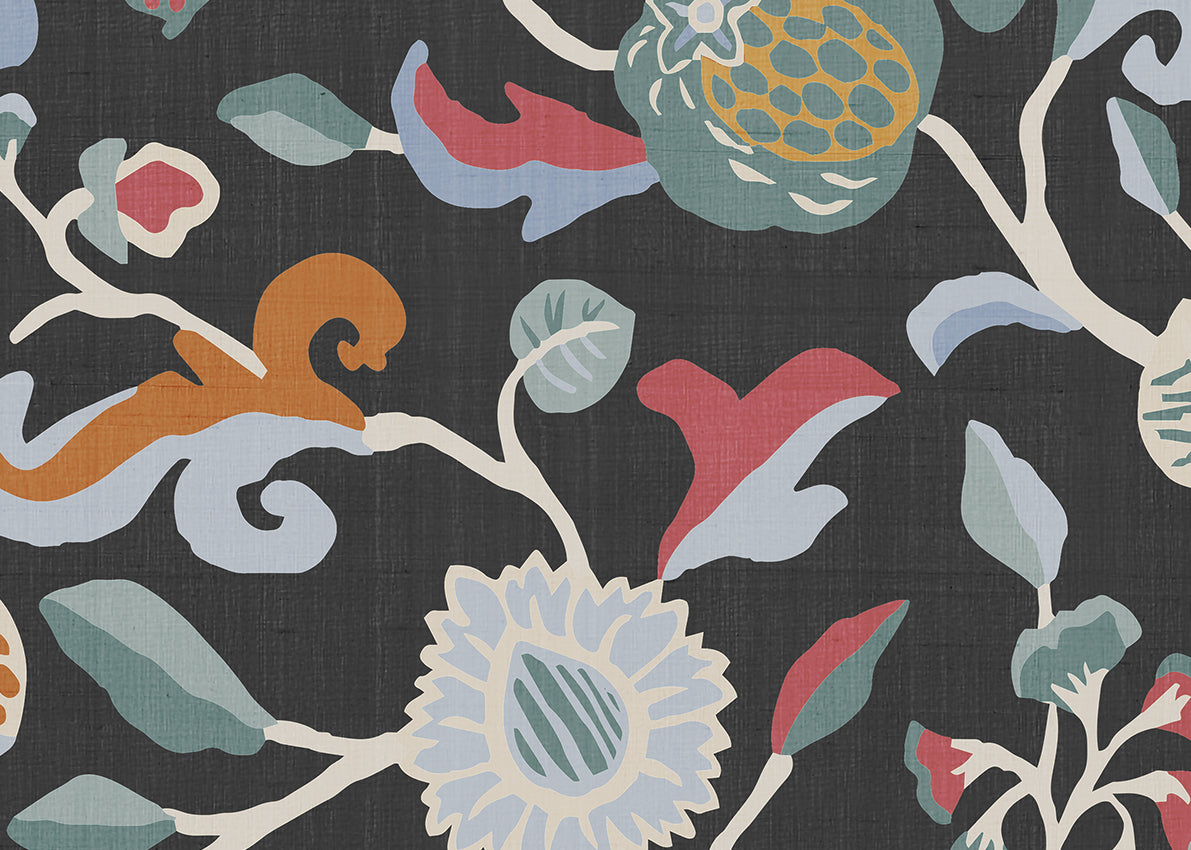 Typical patterns of the folklore are reinterpreted with a contemporary look, with branches and pomegranates printed on a precious Indian silk. The sharp edges and the contrasting colours define shapes and highlight the liveliness of the design. The exotic atmosphere of the décor echoes the famous ballet by Marius Petipa La Bayadère (1877), which narrates the story of a young Indian dancer.