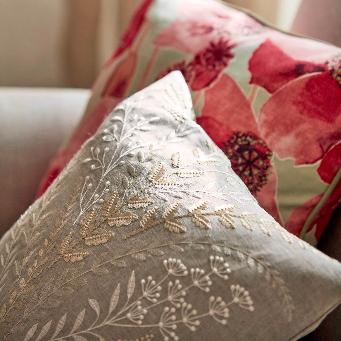 Belsay Linen Fabric blends natural texture with delicate elegance. Soft linen‑mix ground supports gently swaying embroidered grasses in subtle, shimmering tones evoking a tranquil, organic feel. It’s perfect for curtains, cushions, or blinds, lending a calm, refined charm to any living space.