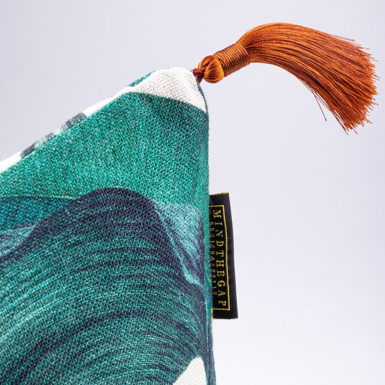 • Size: 50 x 50 cm • Finishing: Copper tassels on corners • Filling: Duck feather • Composition: 100% Linen • Size: 50 x 50 cm • Finishing: Copper tassels on corners • Filling: Duck feather • Composition: 100% Linen