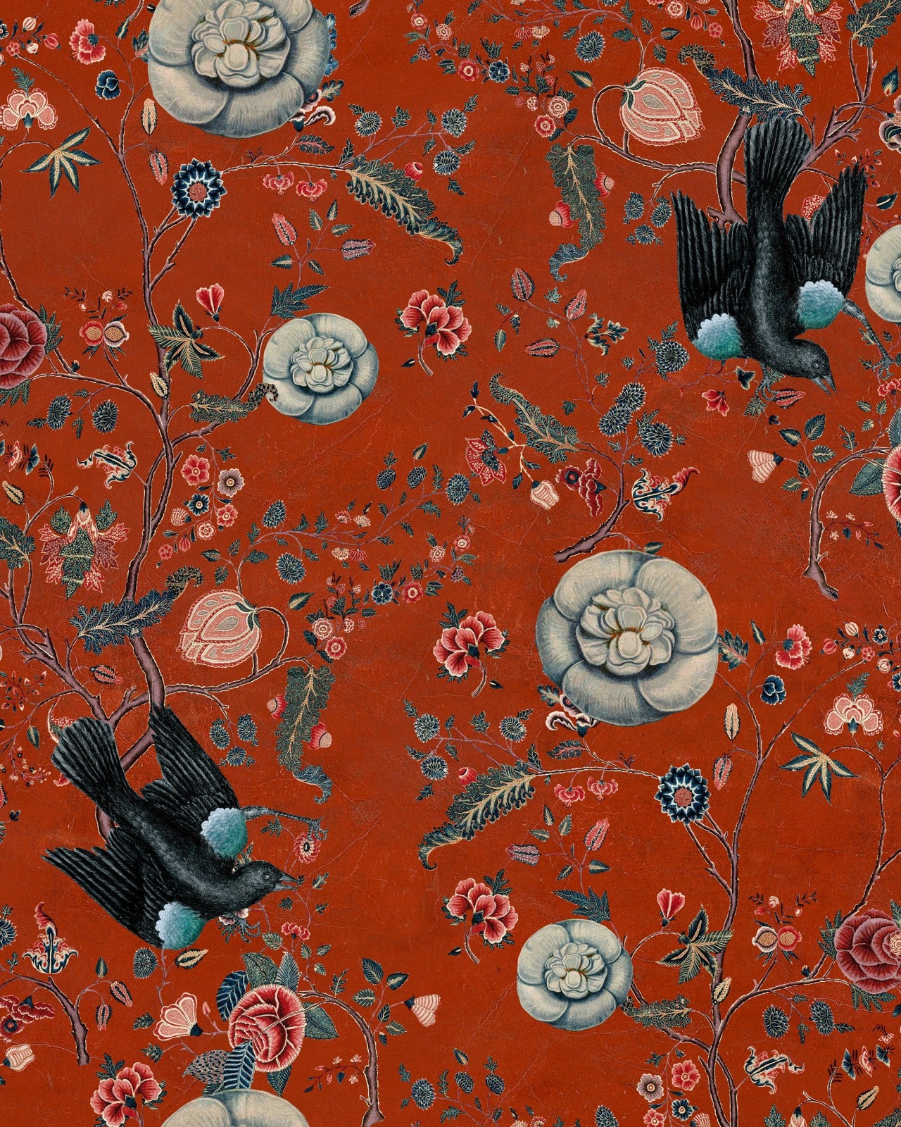 An interesting artwork, on a red background, with spectacular floral motifs, inspired from the bohemian lifestyle. All our wallpapers are made on new generation non-woven substrate. Printed with eco-friendly inks, MINDTHEGAP wallpaper are easy to install on any wall type.