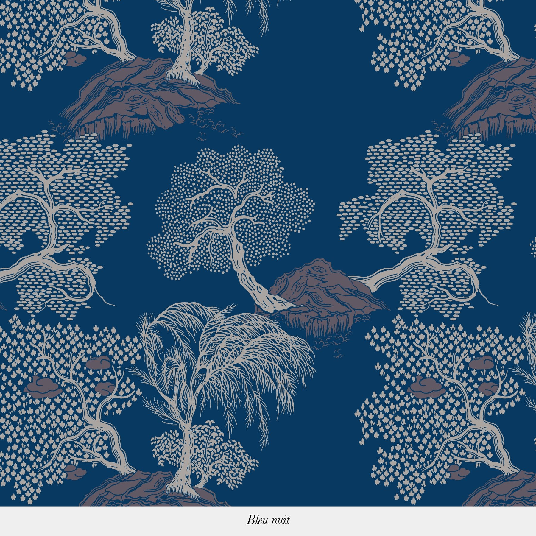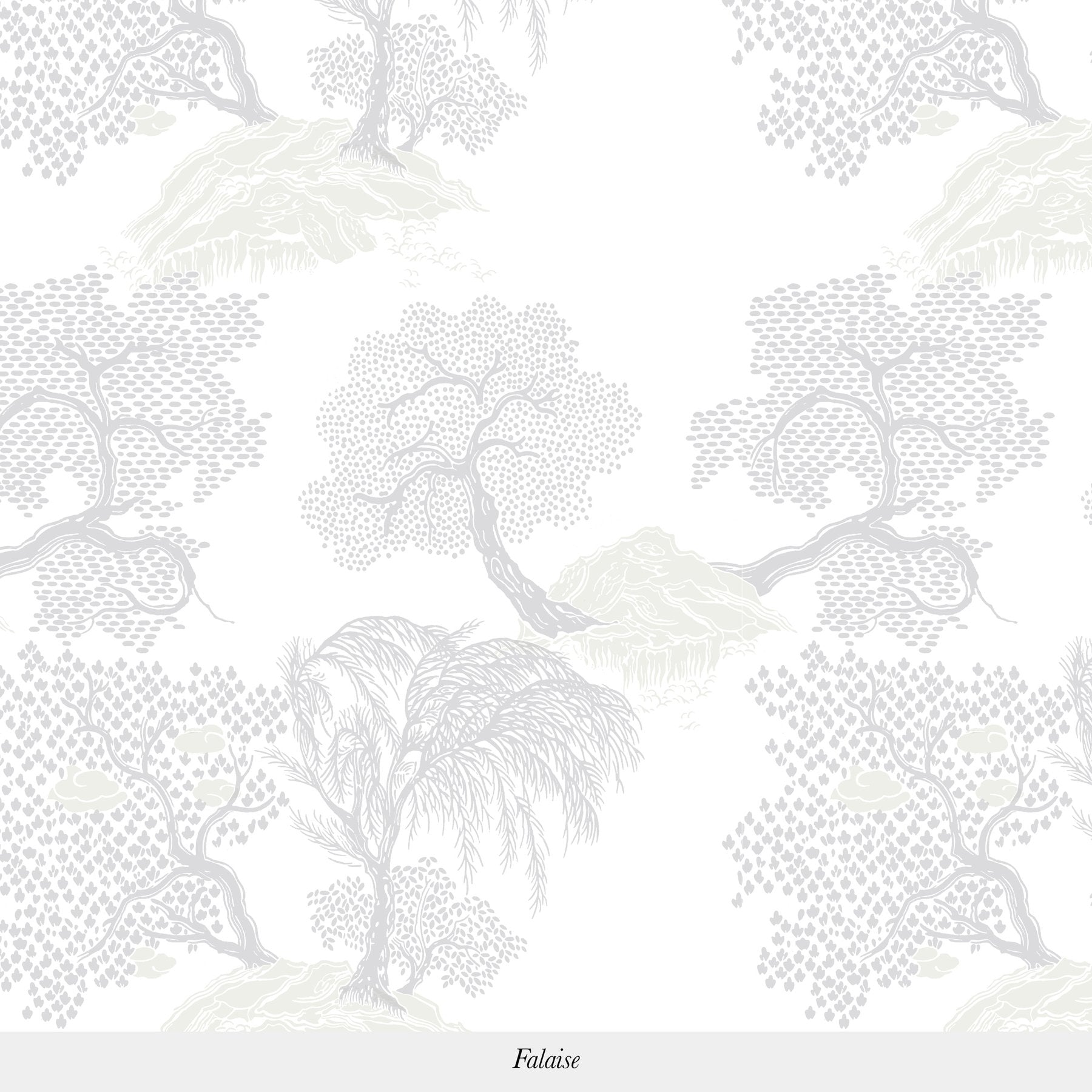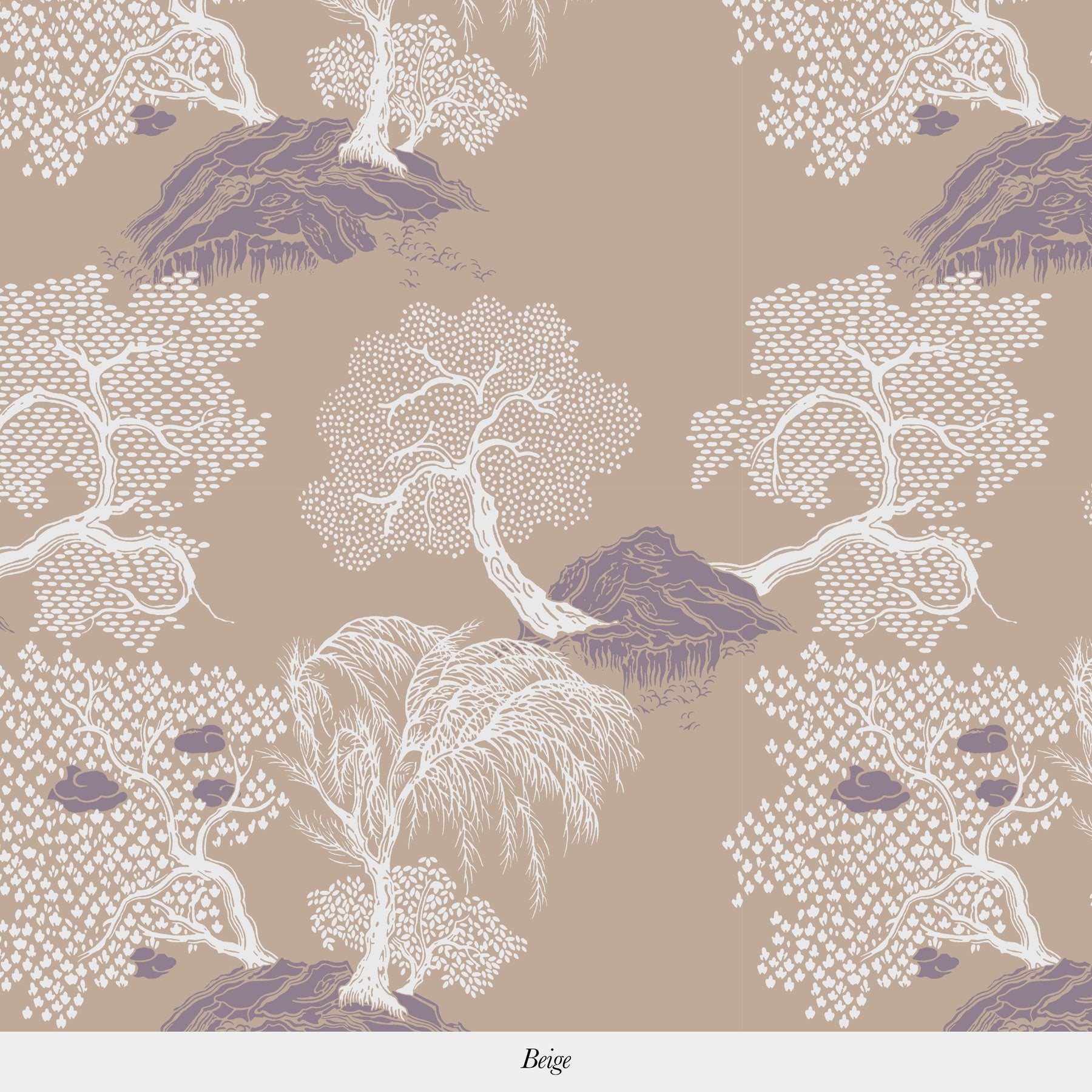 Introducing "Bonsai Garden" by Studio 198, a captivating wallpaper that brings the beauty and serenity of a Japanese-inspired bonsai tree garden into your home. This exquisite design showcases a pattern of small bonsai trees, meticulously depicted with an emphasis on detail and elegance.
