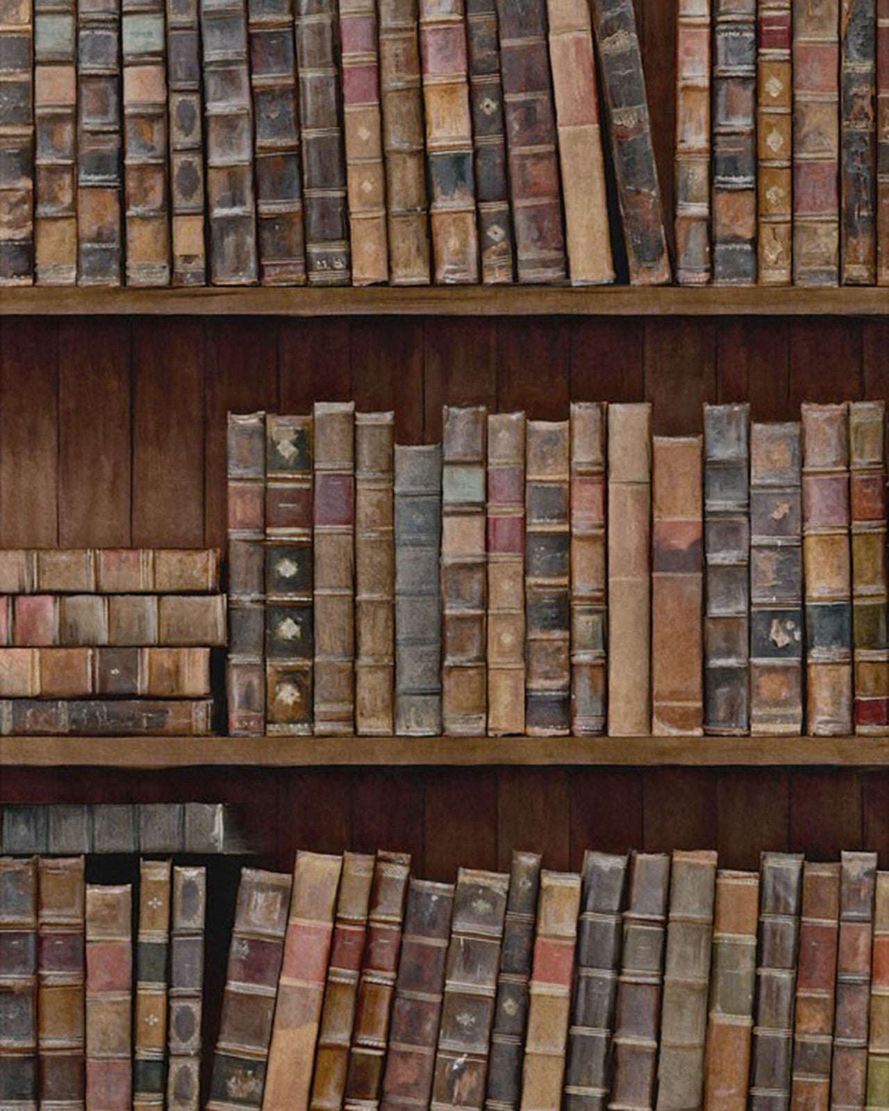 Elegant and well detailed, the BOOK SHELVES premium Wallpaper adds depth and volume to the space, as it showcases a real-like classy collection of vintage books. The design is printed over 3 rolls, to better represent the artistic idea, making for a delightful design. Enrich the atmosphere of any room with this designer wallpaper that comes in earth tones of orange, brown, pink and blue, up against a rich wood-like background.er.
