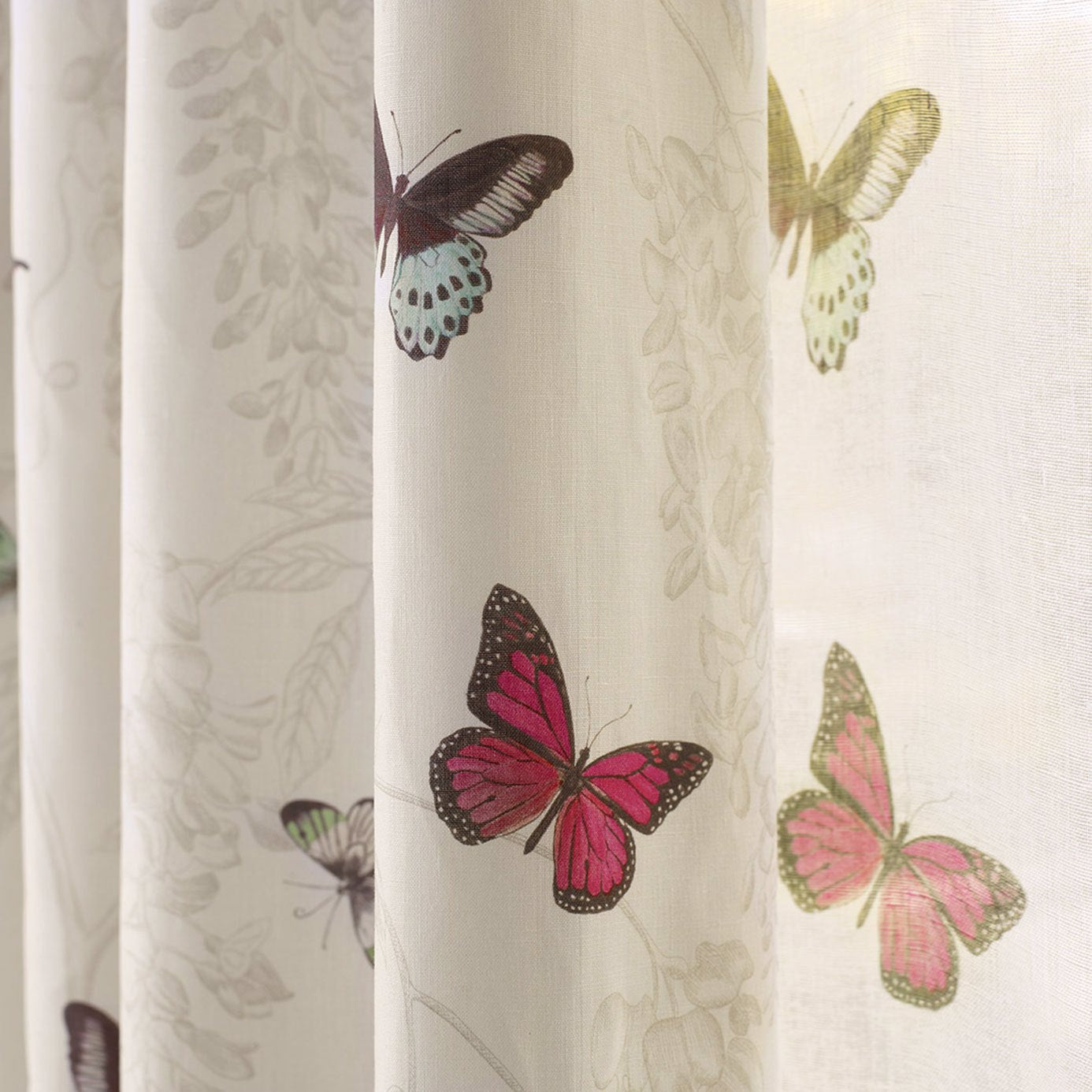 Bring a soft, airy charm to your rooms with Butterfly Voile Fuchsia/Cream — a sheer 100% linen fabric where delicate butterflies flutter across an elegant cream background. Its light, translucent voile weave makes it ideal for curtains, blinds, or decorative drapes, especially in rooms where you want natural light to filter gently. The whimsical butterfly motif adds a touch of playful sophistication, perfect for creating a breezy, nature-inspired ambience in living rooms, nurseries, or cosy reading corners.