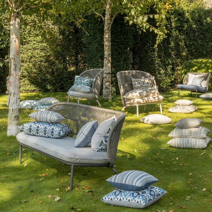 This most versatile of stripe designs draws inspiration from our extensive archive of vintage and antique textiles. This beautiful stripe comes in a number of superb colour ways that covers our palette, each highlighted with intricate small scale patterns that celebrate the art of textiles. Woven with jute and cotton for statement upholstery, cushions and blinds as well as other interior applications. Available in Grass, Spice, Indigo and Peacock.