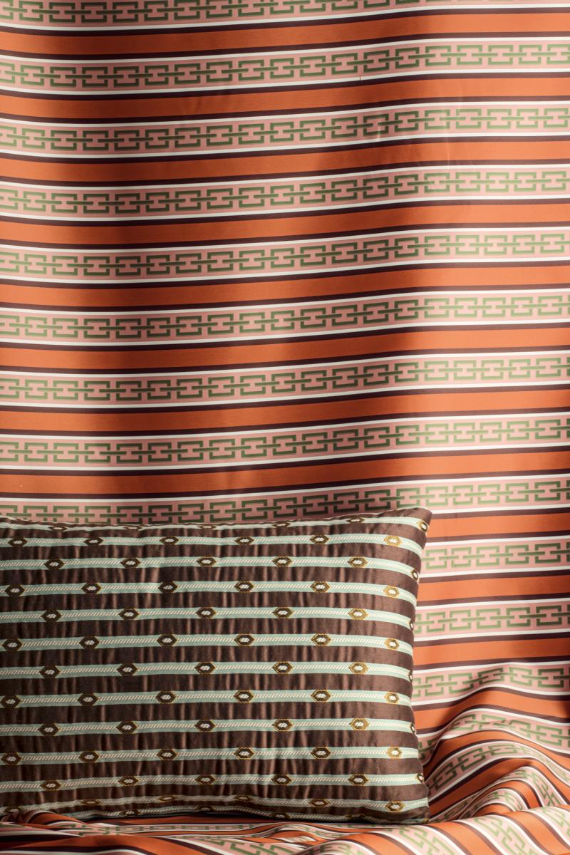 A stripe with chain motif, inspired by an early 19th century wallpaper fragment I discovered in the collection of a London museum. Double-width striped taffeta, flame retardant. Suitable for curtains and drapes.