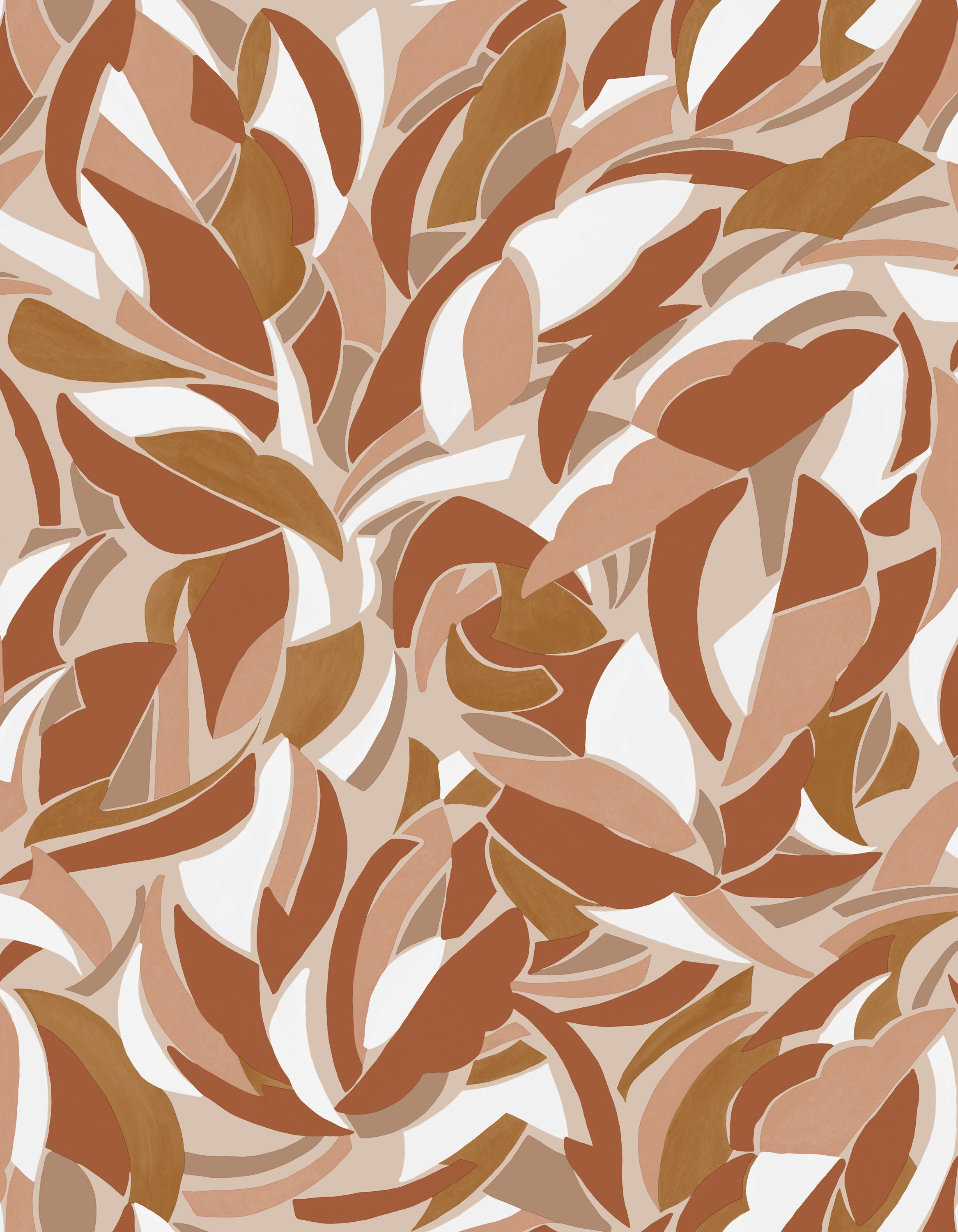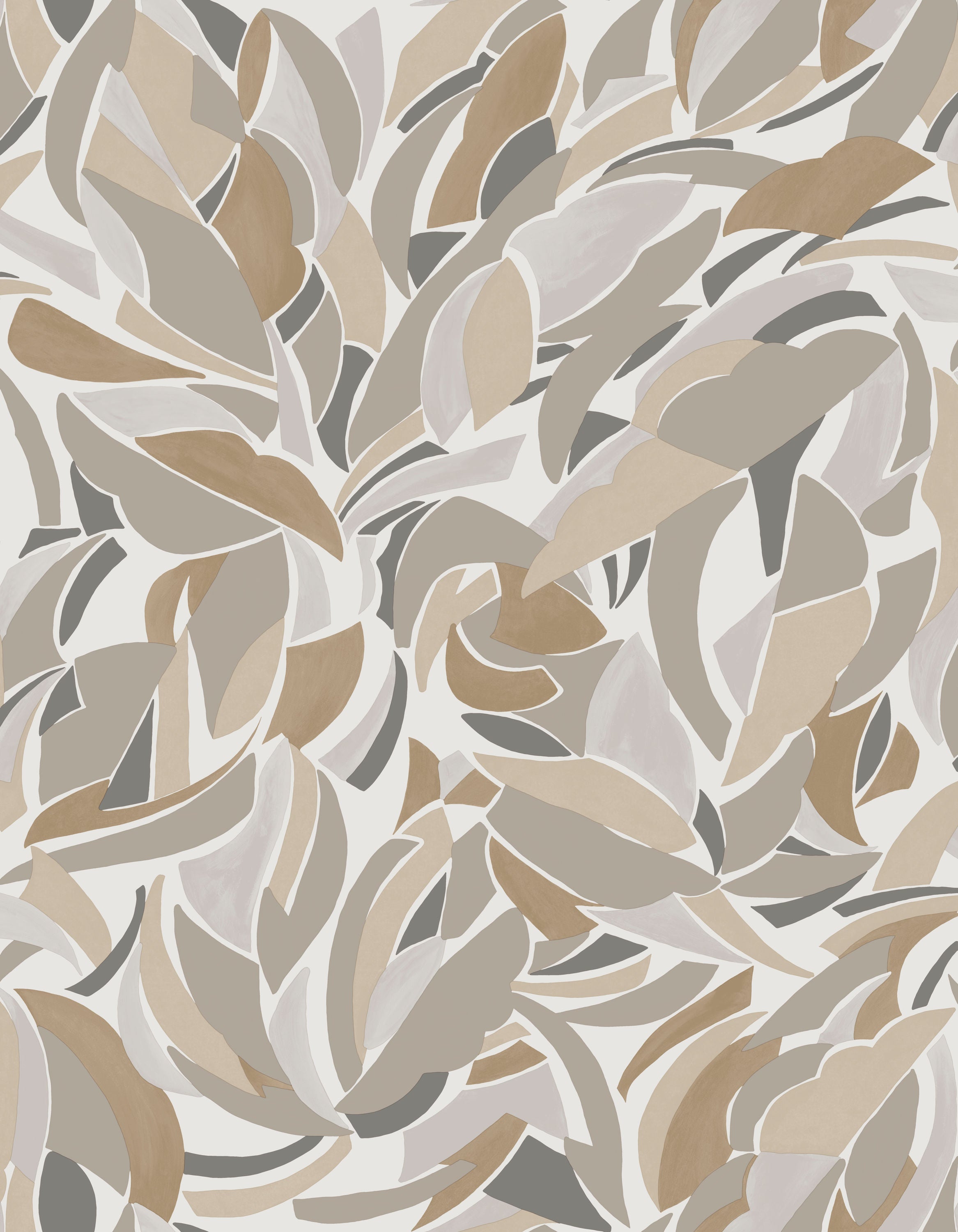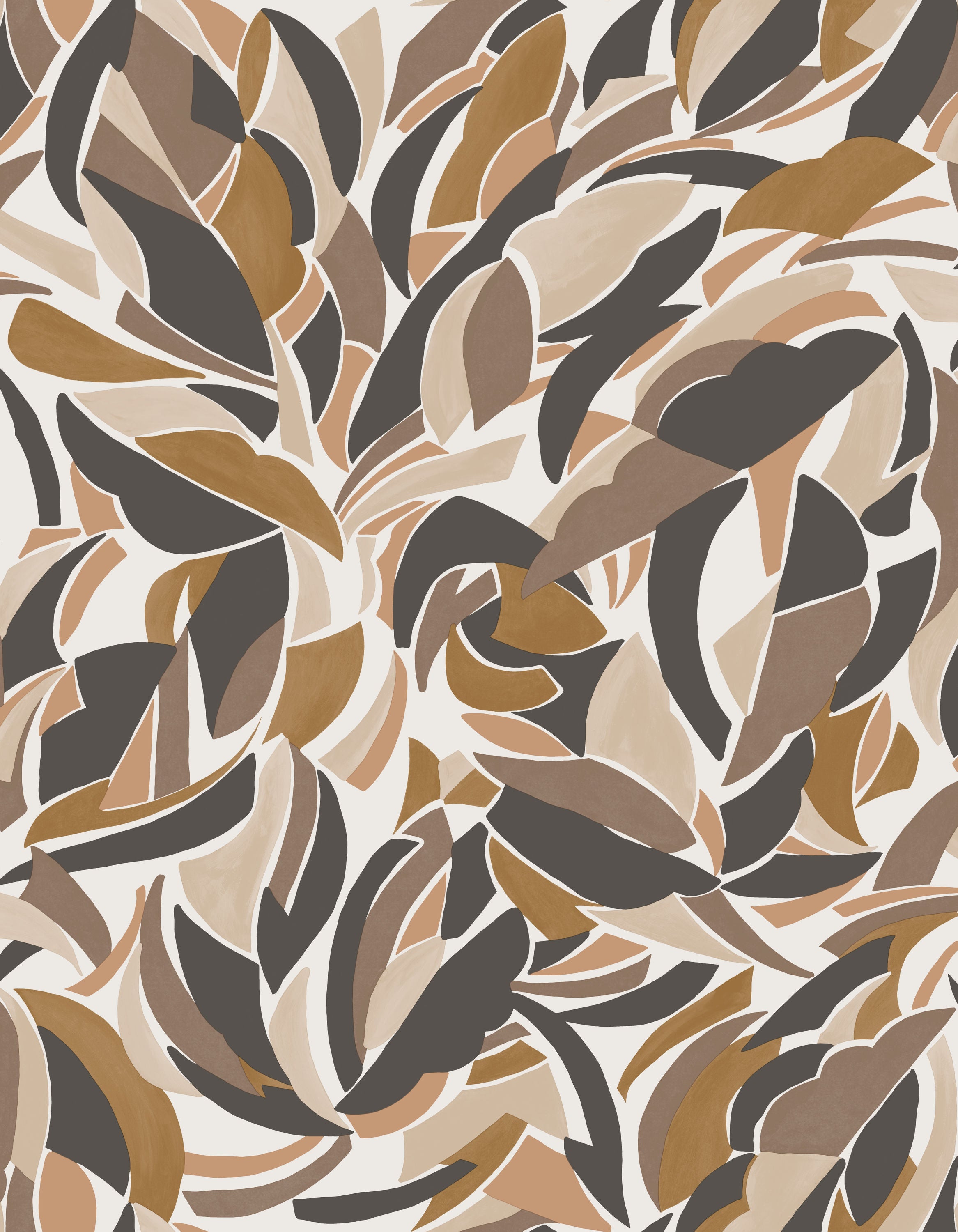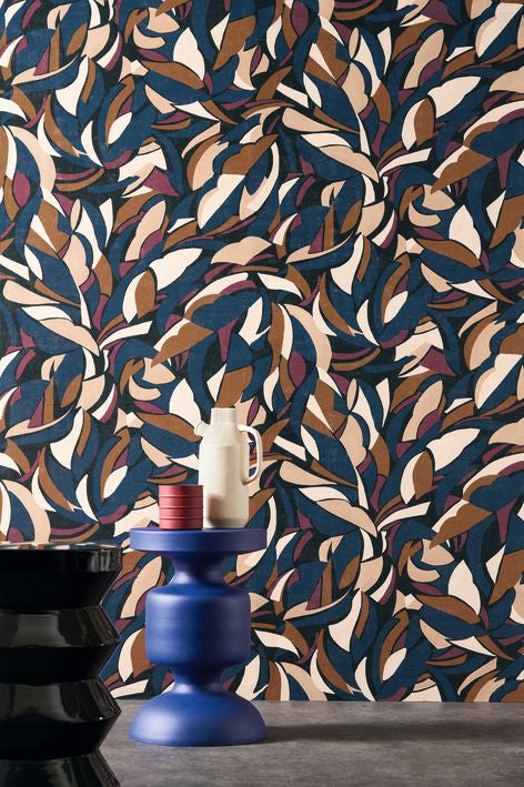 The designs recalls a work of art composed of multiple collages. The planes of colours seem to be randomly placed, adding an impetuous character to the composition. They retain a hand drawn quality and the brushstrokes on the canvas. Produced using rotogravure on two irregular grains, the printing technique gives the design and the blend of colours their finesse.