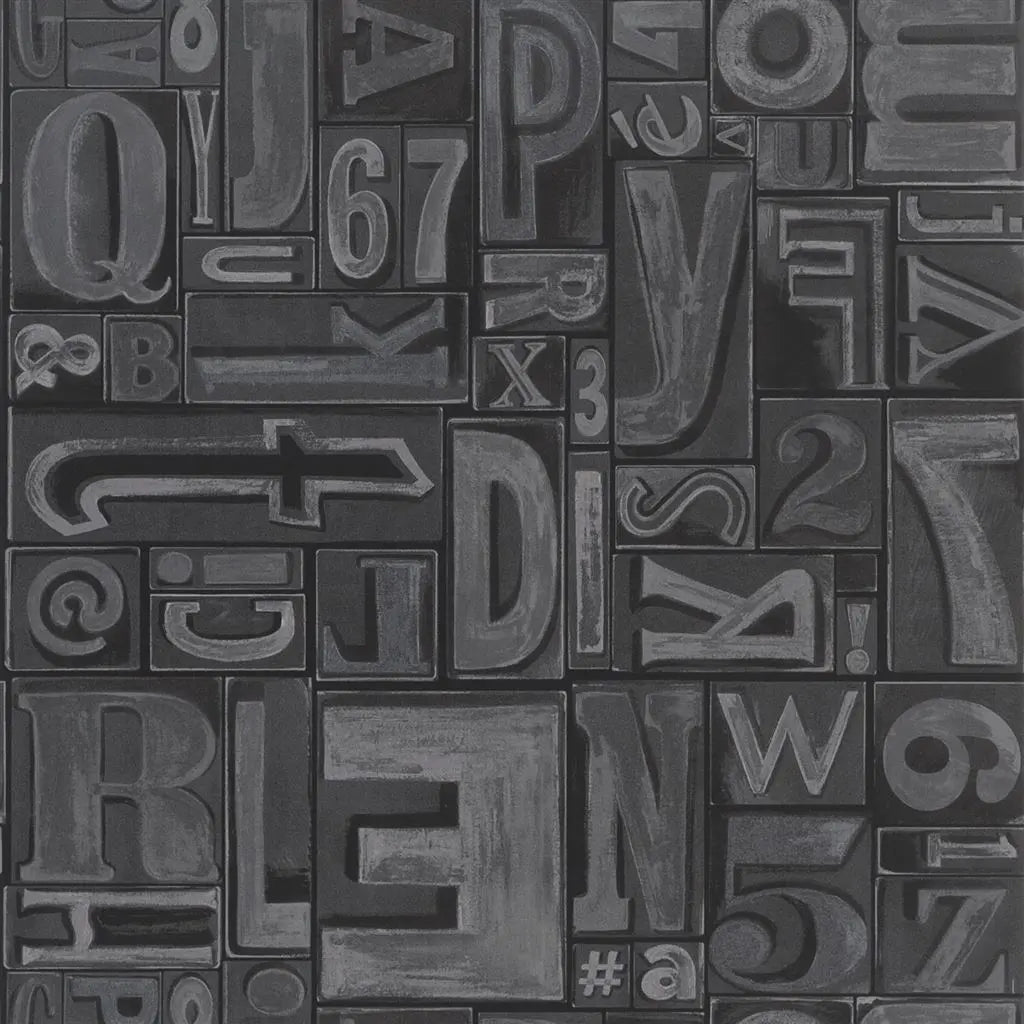 Inspired by an antique letterpress and its different sized letters in wooden blocks, this design takes a vintage pattern an adds a contemporary touch by not just including letters but modern symbols such as hashtags. This large scale wallpaper creates a real statement and is perfect for any urban space. Printed onto non-woven grounds for ease of hanging.