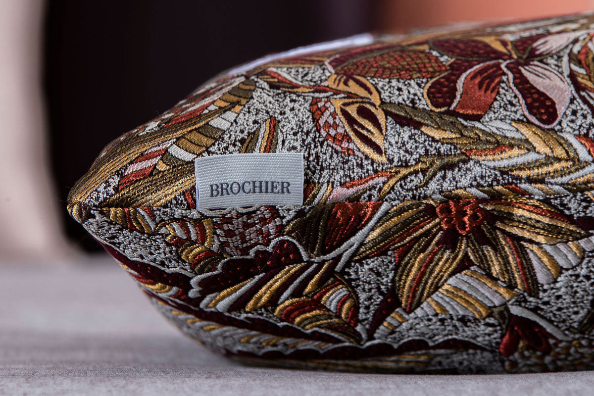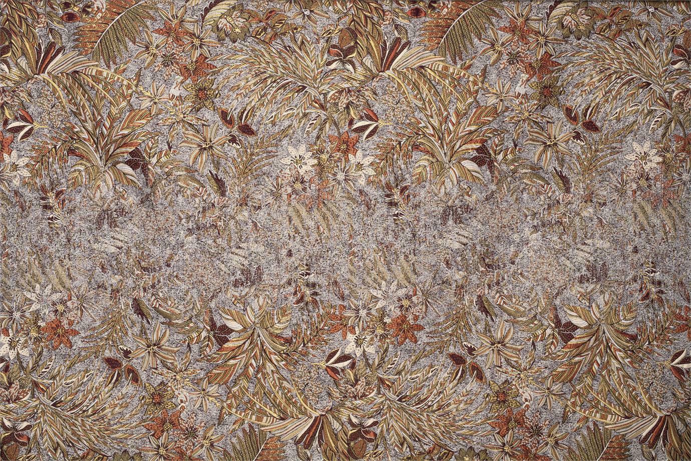 BACAN RUGGINE: three-dimensional jacquard fabric. The pattern and the variety of colors make it ideal for interior decoration.