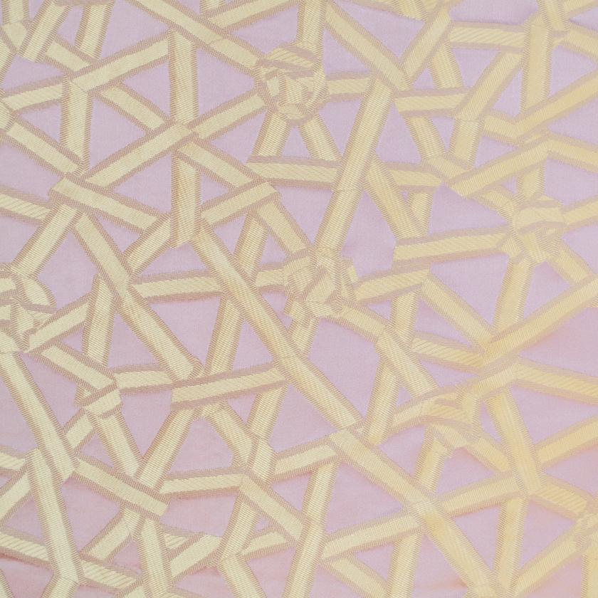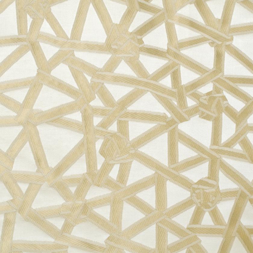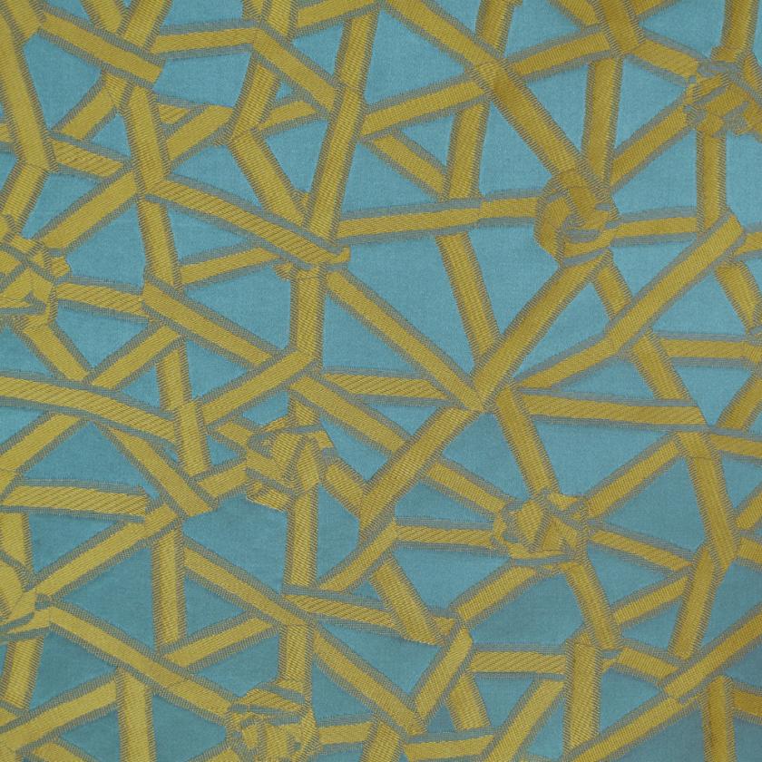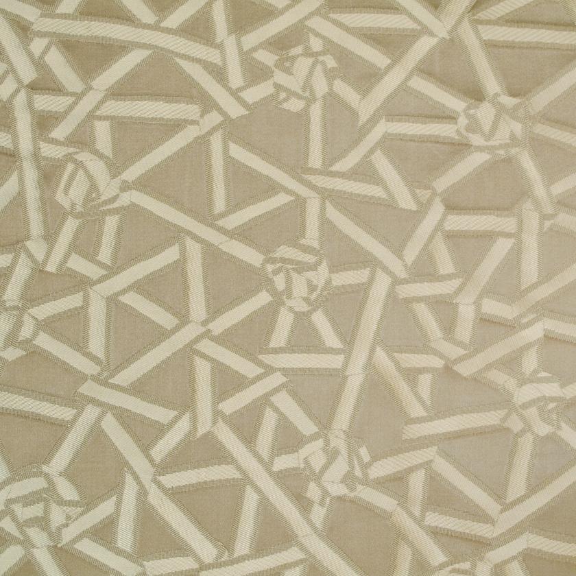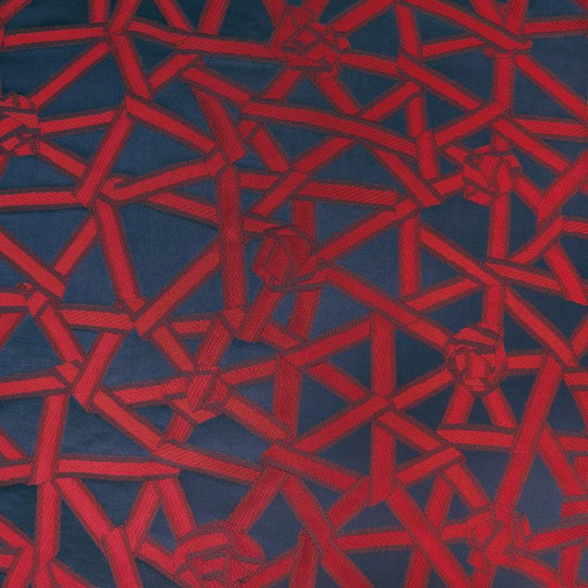 CORDERIE is produced from an actual plaiting of ribbons, almost knots. At the design and production stages for this article a pattern of ribbons, plaited together, was made by hand and later reproduced by applying the jacquard technique. An interesting development which draws attention to an unusual step in the creative process.