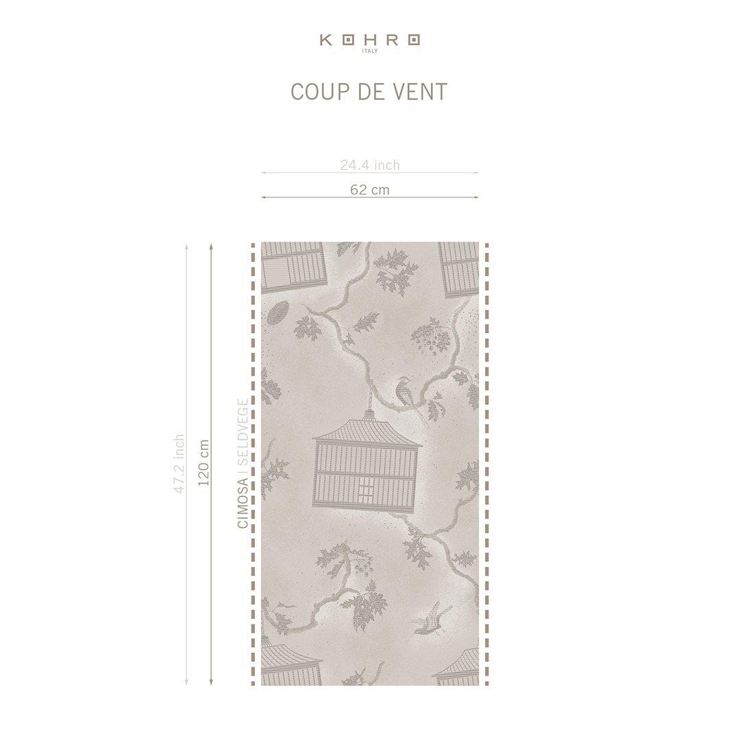 Coup de Vent fabric features a design style that encompasses animals, floral motifs, and ornamental elements. This combination of patterns brings a sense of nature and artistry to the fabric, making it visually captivating.