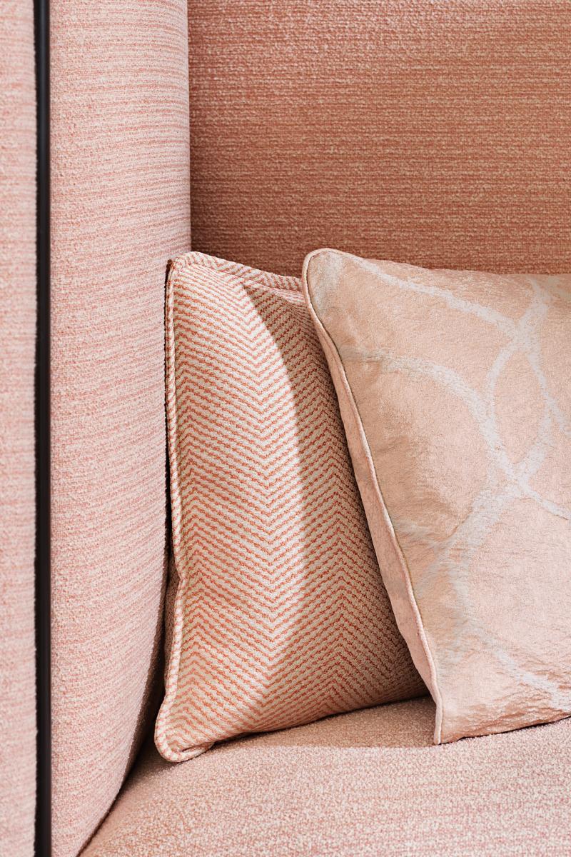 Featured by a curved-line grid to create a pleasing effect of movement on the surface. A classic timeless fabric. A flame retardant damask suitable for drapes, both for residential and contract use.