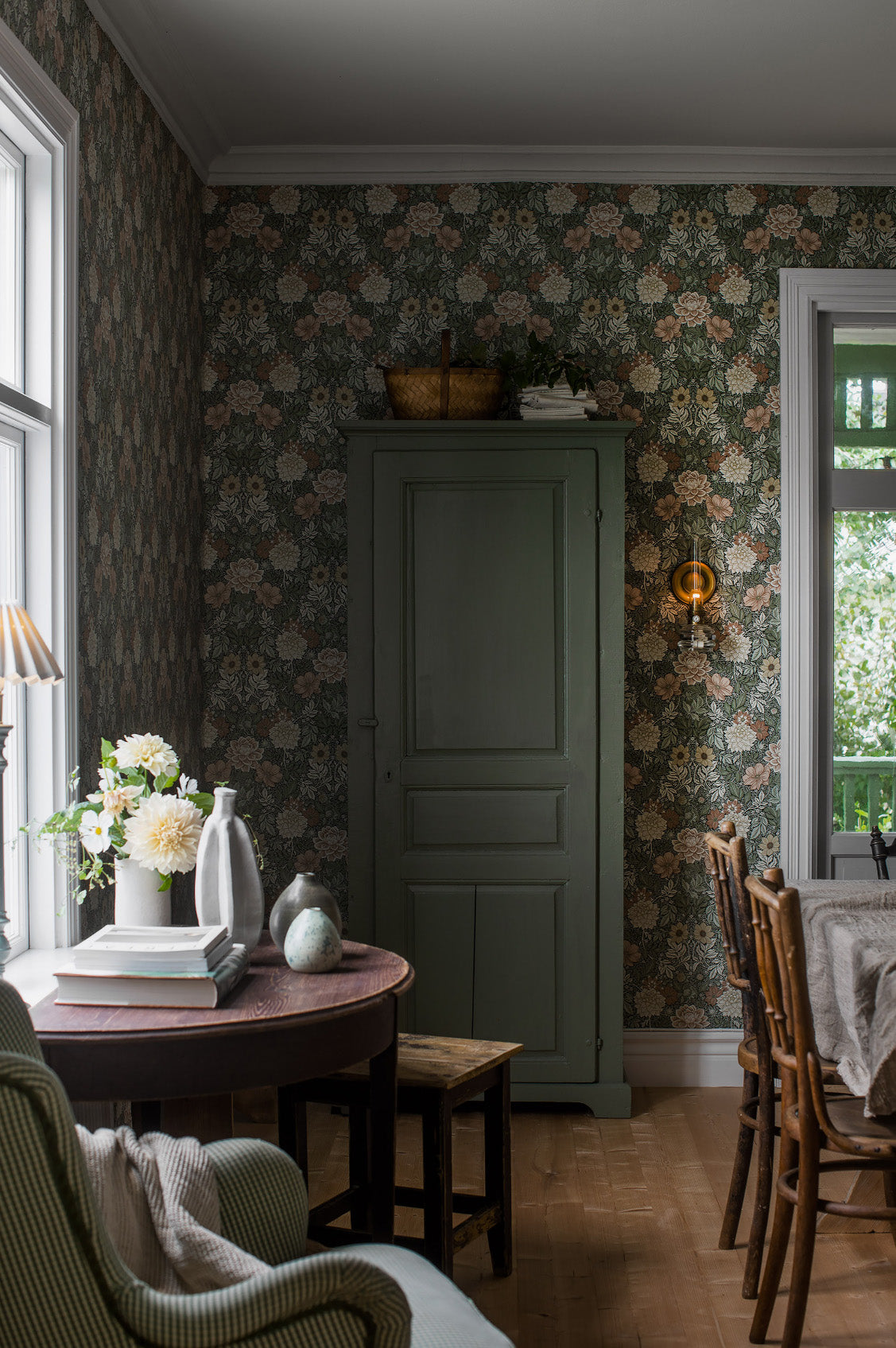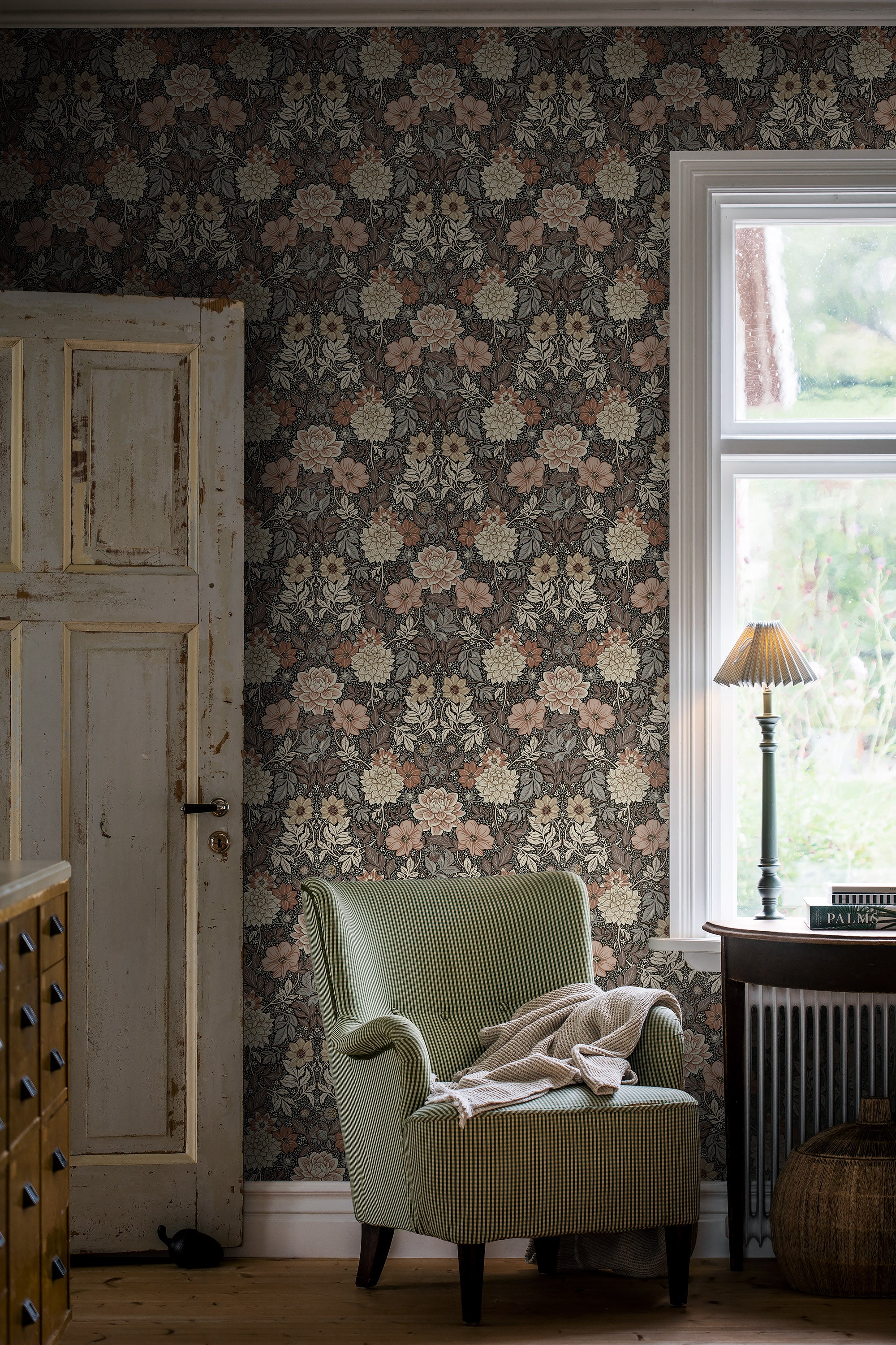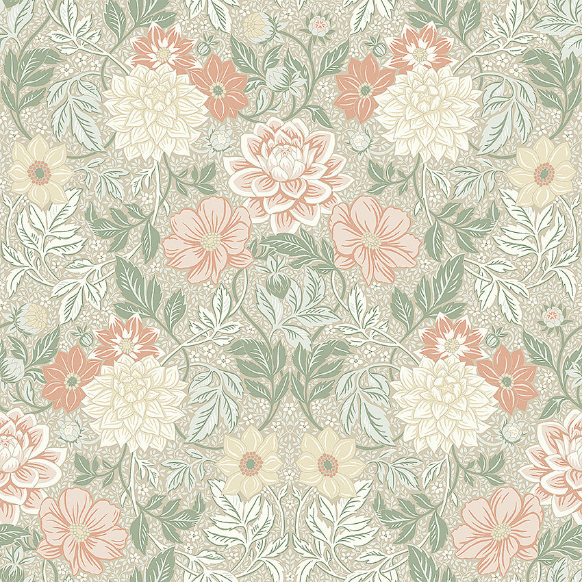 Coloured in a palette of rich and vibrant tones, our Dahlia Garden wallpaper mingles shades of green with rusty reds and yellows to develop a vintage aesthetic that’s filled with rustic appeal. Capturing the beauty of late summer days, its verdant flowers and detailed foliage create a soothing and harmonious sanctuary in your home. Hang it in your living room, kitchen, or dining area for effortless elegance.