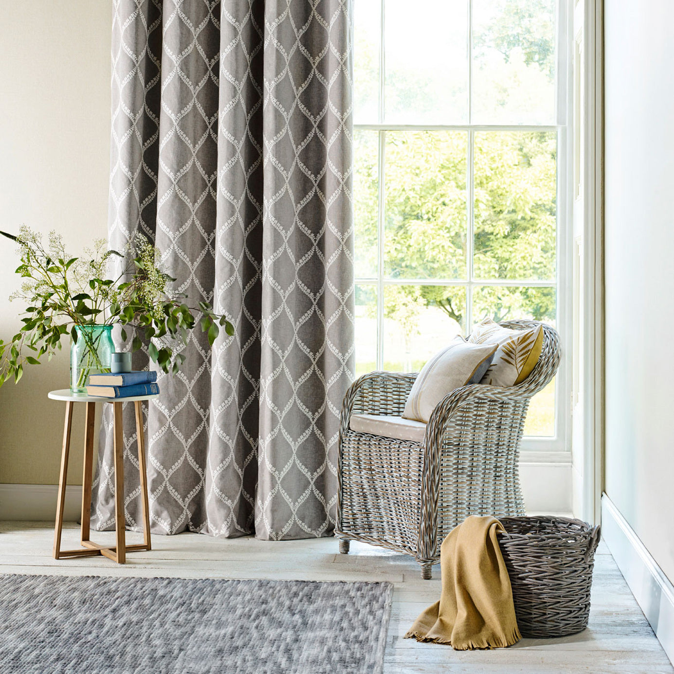 Give your interior a touch of understated elegance with Dalby Indigo. This fabric showcases delicately embroidered, intertwining leaf trails arranged in a classic trellis pattern, all set against a rich indigo base. Its cotton-polyester-linen blend offers a balanced weave and soft drape, making it well-suited for curtains, cushions or light upholstery. Dalby Indigo brings timeless style and subtle texture, ideal for living rooms, bedrooms or cozy reading nooks.