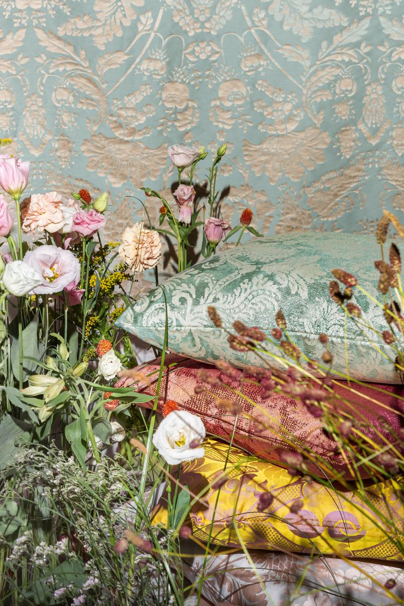Damask has a new meaning. The classic pattern, taken from an eighteenth-century archive document, has been overlaid with a sort of latticework that gives it a special luminosity. This is the most elaborate of the new family of damasks in terms of variety of weaves.