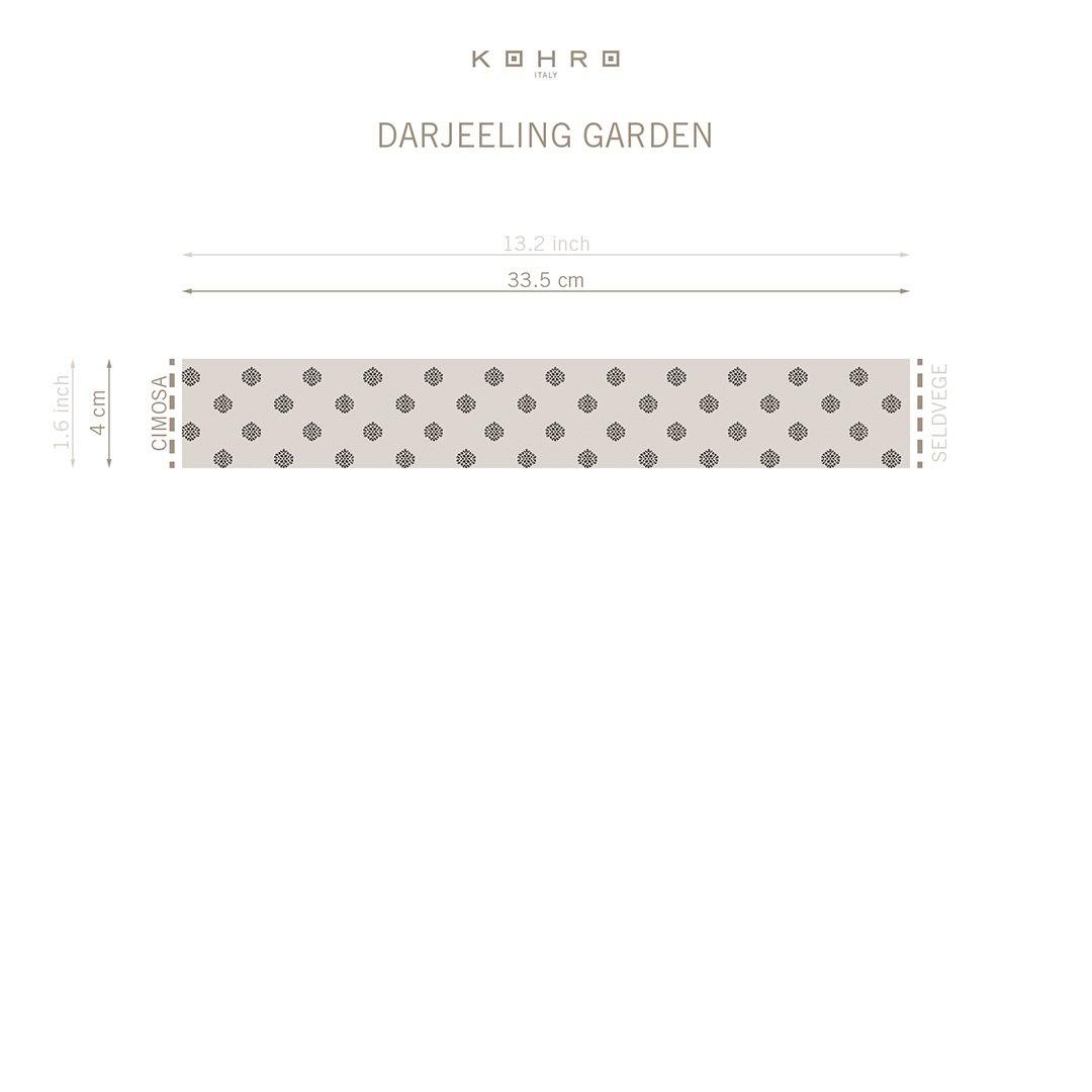 Darjelling Garden fabric by Kohro is a double-width textile known for its luxurious composition of 76% cotton and 24% silk. This blend of natural fibers creates a fabric that is soft, breathable, and adds an element of elegance to any space.