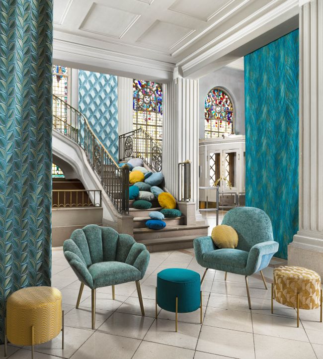 Daum by Casal captivates through its fluid, organic geometry—curved lines that dance across the surface in a mesmerising rhythm. The soft blue palette creates a serene backdrop for this dynamic pattern, striking an elegant balance between movement and restraint. This fabric invites contemplation, its flowing design evoking a sense of calm sophistication. Whether applied to upholstery, soft furnishings, or wall coverings, Daum brings a contemporary sensibility to refined interiors, offering visual intrigue that rewards closer inspection whilst maintaining an air of understated elegance.