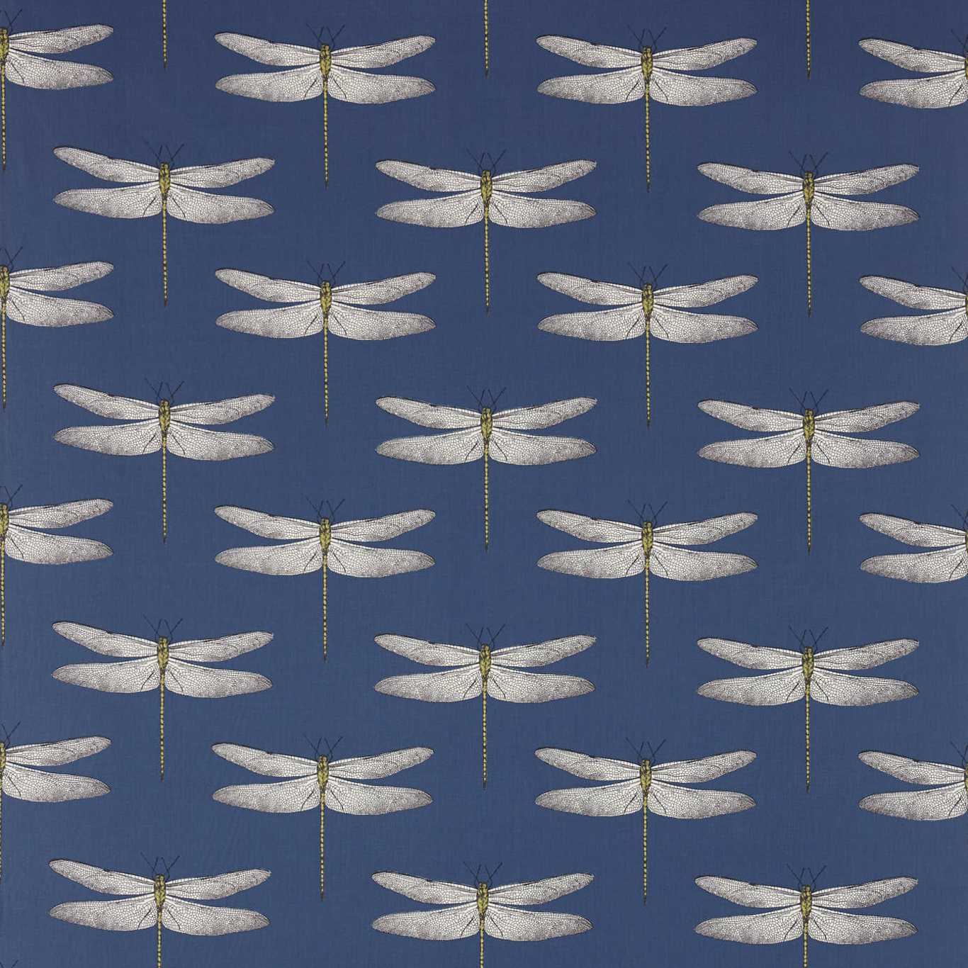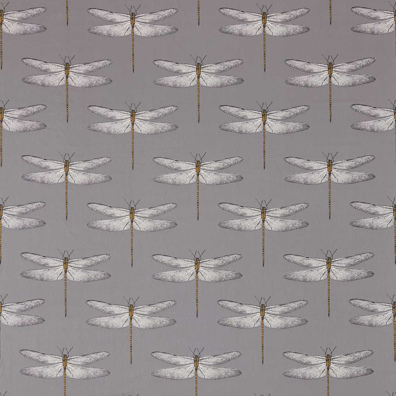 Palmetto Fabrics - Demoiselle. An up-scaled delicately drawn dragonfly motif is placed on this 100% cotton fabric in dramatic colourways. Use to add an element of the unforgettable. A wallpaper of the same name is also available.