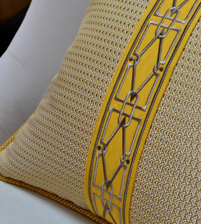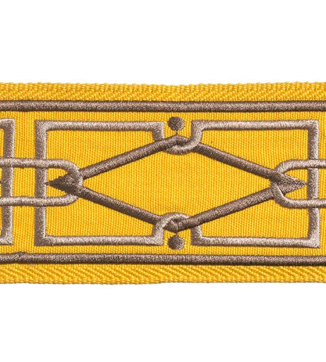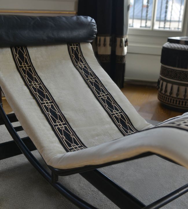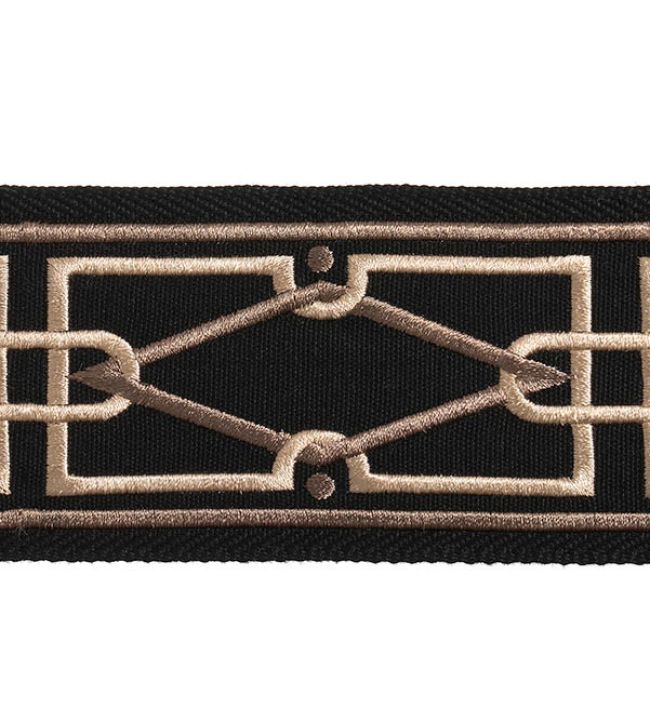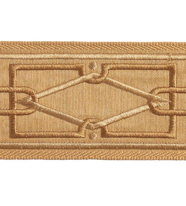 Diamond Embroidered Braid by Houles presents a striking geometric composition at 75mm width, designed to infuse interior details with understated luxury. The precisely rendered pattern showcases meticulous embroidery craftsmanship, adding visual intrigue to curtains, cushions, and upholstered pieces. Rendered in the warm, distinctive Acajou colourway, this trimming bridges contemporary design sensibility with classical refinement. An exceptional choice for those seeking to elevate soft furnishings with architectural detail and sophisticated restraint.