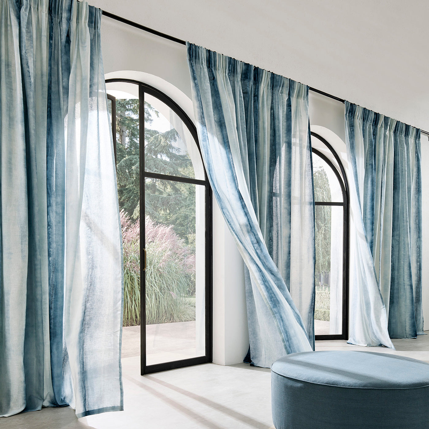 Diano is an elegant woven sheer with a soft, organic look and a subtle watermark effect. Its gentle ombre print adds fluid movement, making it a beautiful choice for airy, graceful drapery that filters light with ease.