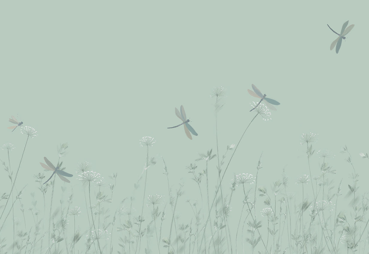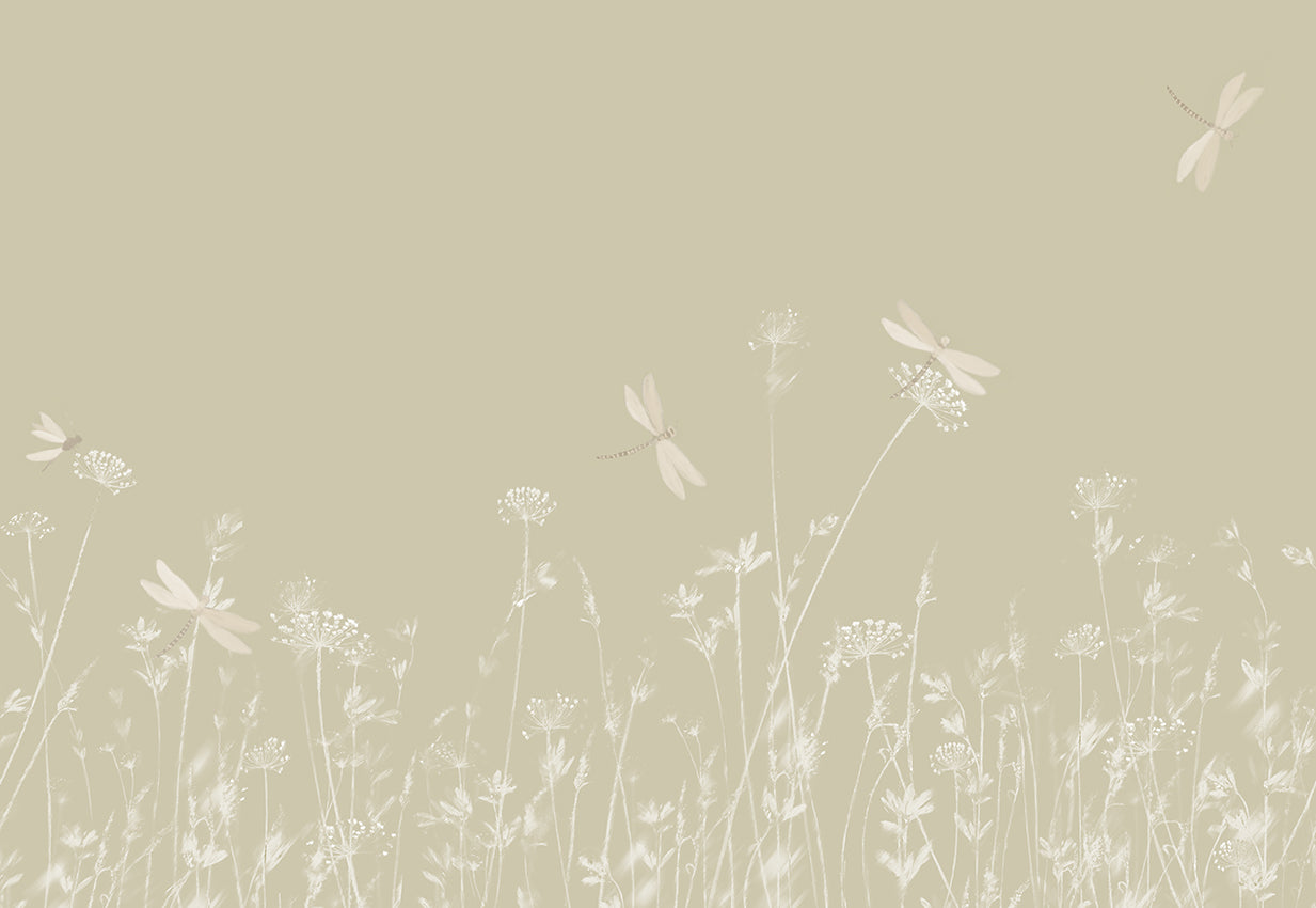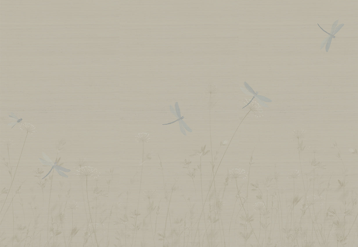 The poems by Emily Dickinson (1830-1886) made her garden famous worldwide, thanks to its seasonal variations that were a constant a source of wonder and inspiration. The same wild flowers loved by the writer were transposed on this wallcovering almost in a pictorial way, animated by the flight of dragonflies to give naturalness and dynamism. Developed in different colors, this wallcovering is available in two options on fil posé in silk and three on silk and metallic fibers.