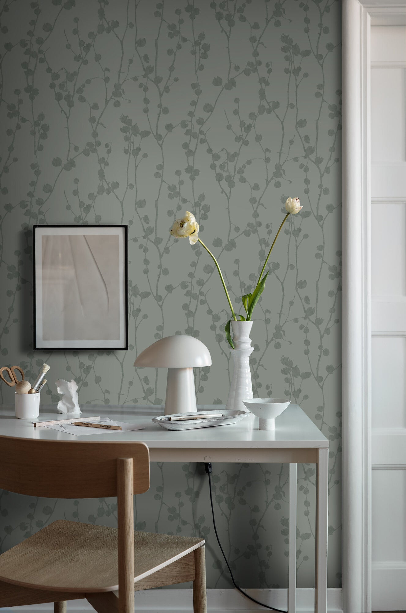 Featuring detailing in muted rusty red tones set on a dark linen beige backdrop, our Disa wallpaper oozes Scandinavian style and contemporary charm. Depicting interlocking stems and buds, it is subtle enough to dress all the walls of the room whilst making a true design statement.