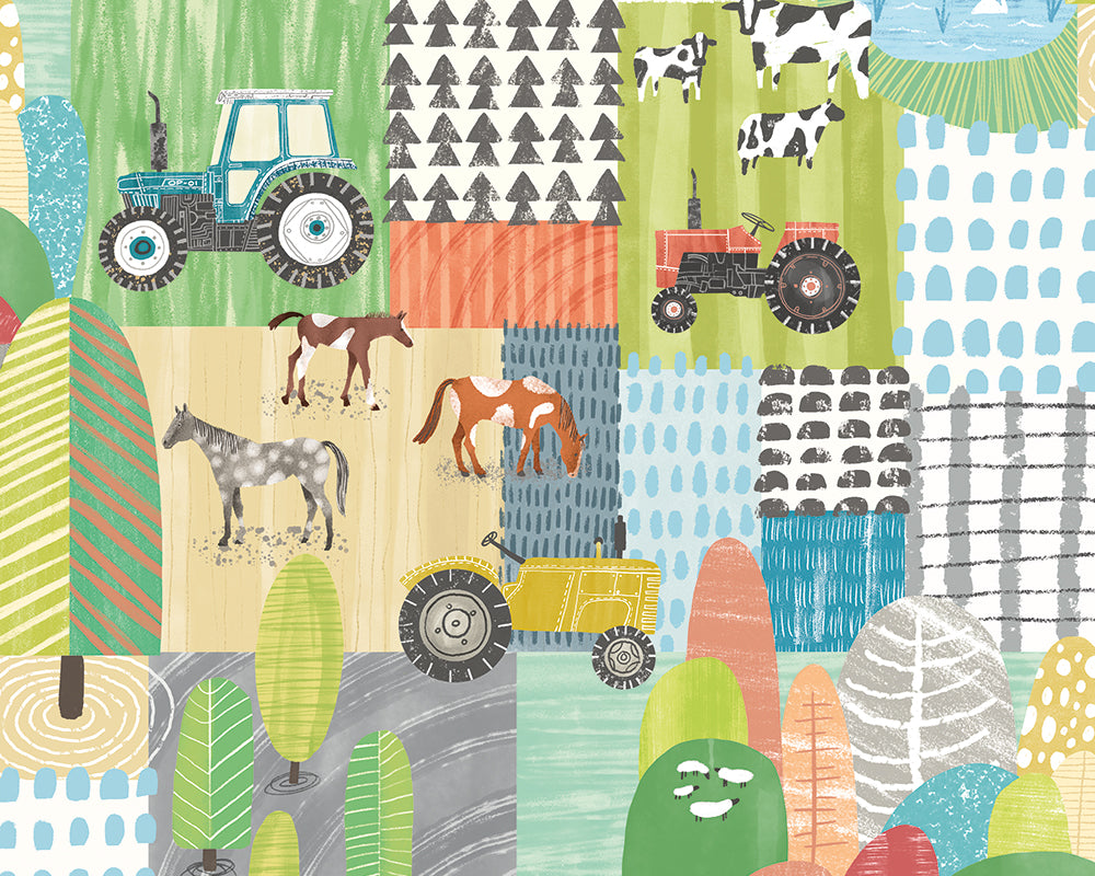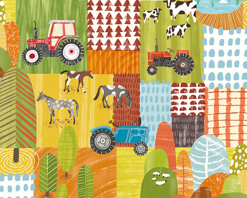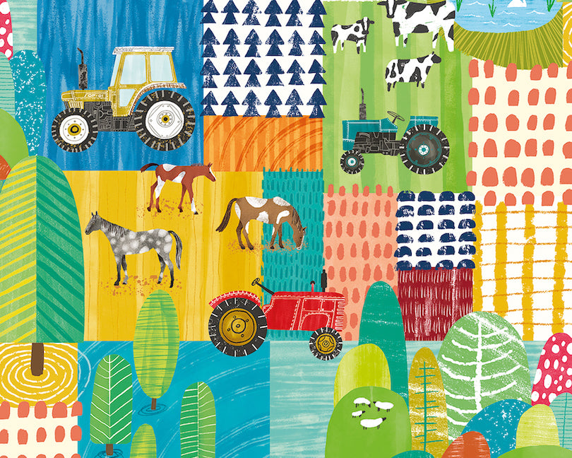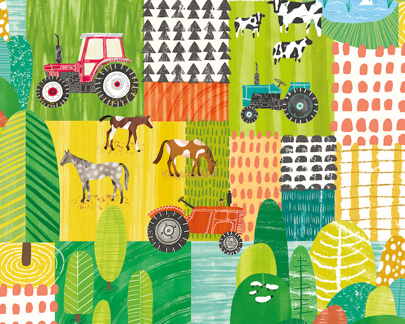 Wellies at the ready! Pull on your galoshes and take a stroll down on the farm. Spot animals and tractors, farmhouses and trees as you wander through this quirky rural landscape. Whistle a merry tune and hike across a patchwork of wide-open fields, up steep hills and down valleys towards cool blue waters. Country life has never looked better. Just remember to give our friendly horses and cows a cheerful wave!