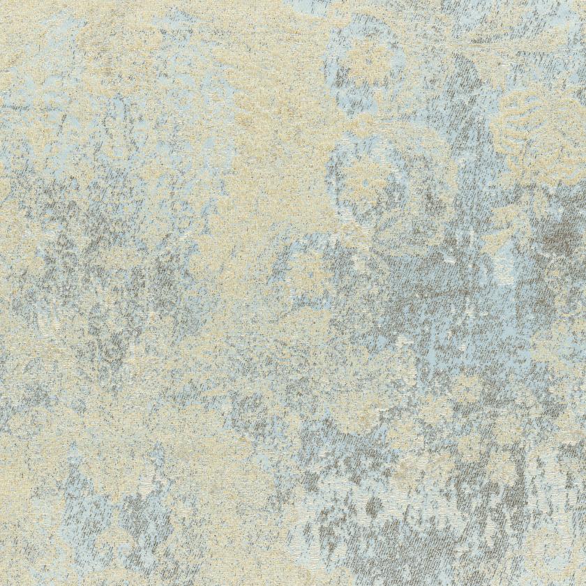 A lightweight lampas in relief on a precious silk ground and with the look of a precious metallic lace. The pattern is large, but not overbearing, for a discreet decoration. The effect is that of an old wall decoration with an oxidised, abraded surface. Ideal also for drapes.