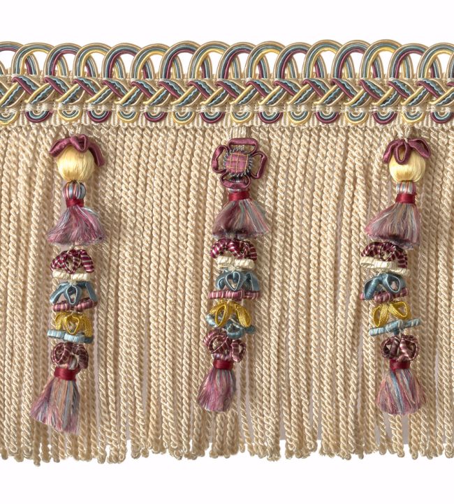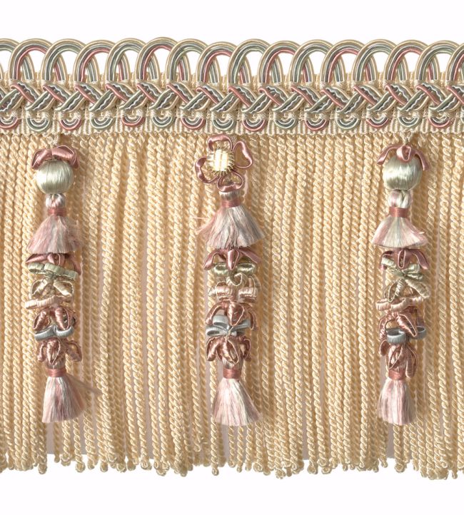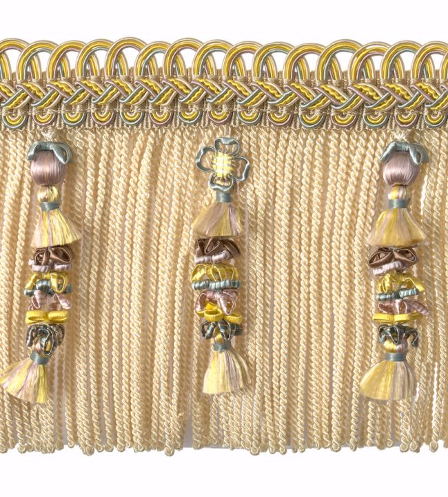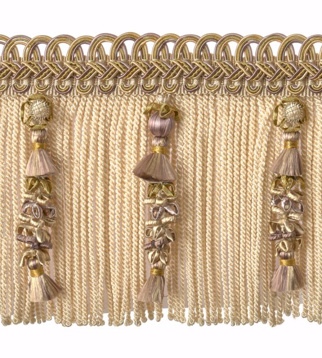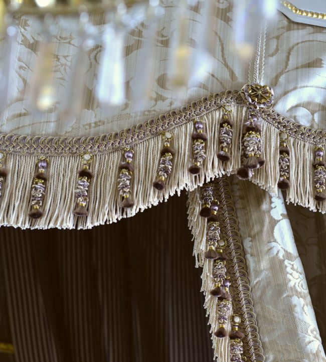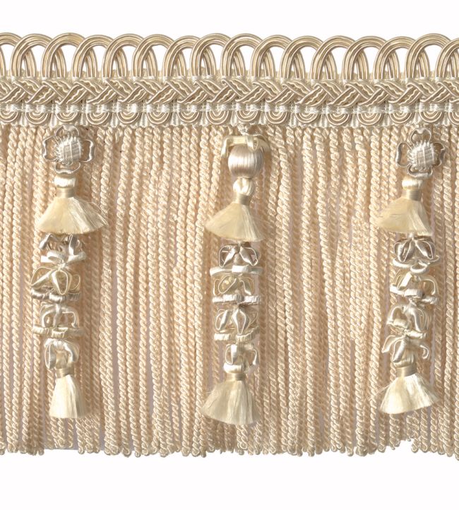 Houles' Embellished Bullion Fringe offers refined elegance with its delicate construction featuring intricate tassel and bead detailing. This 130mm trimming showcases exceptional craftsmanship, perfect for elevating upholstery, soft furnishings, and bespoke interiors. The Blanc Hermine colourway provides a sophisticated neutral palette that complements both contemporary and traditional design schemes. Ideal for designers and decorators seeking premium finishing touches that combine texture and visual interest with understated luxury.