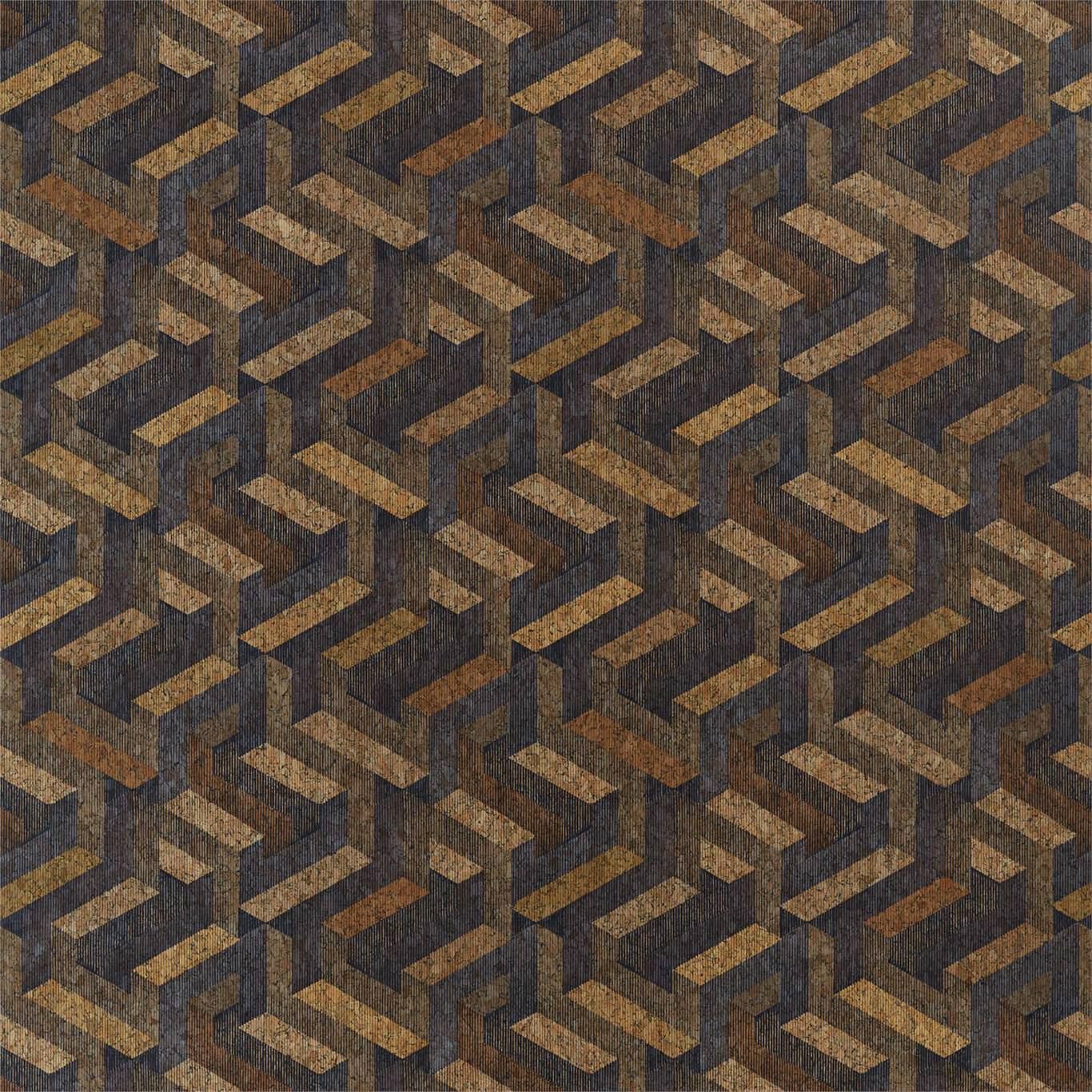 Anthology 07 - Named after M.C. Escher, the artist of impossible constructions, this stunning wallpaper is digitally printed on natural cork. Contrasting spontaneity and form with a labyrinth of prescriptive tessellations, Escheresque introduces both a mathematical order and a warm, softness (not to mention it’s environmental and aesthetic qualities).