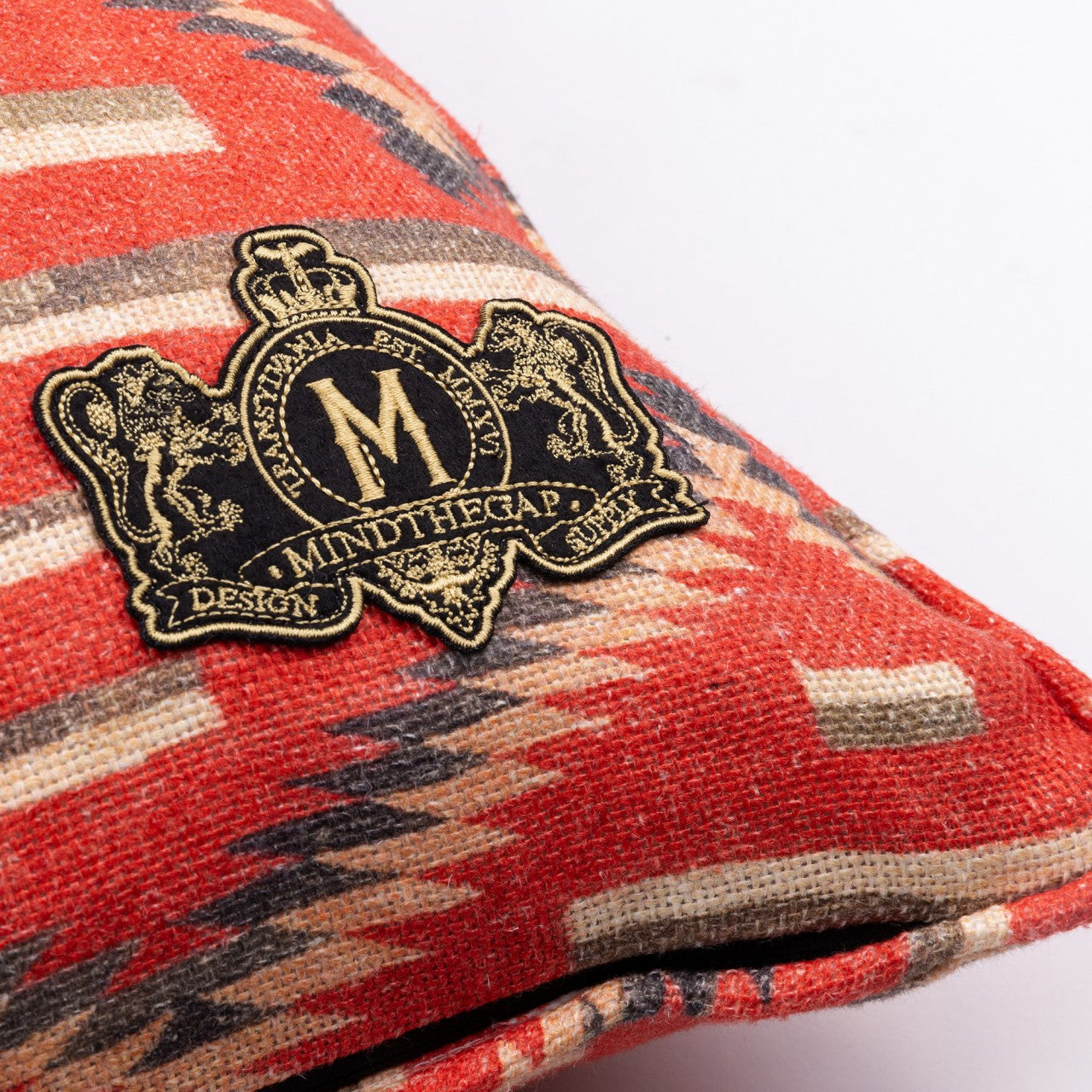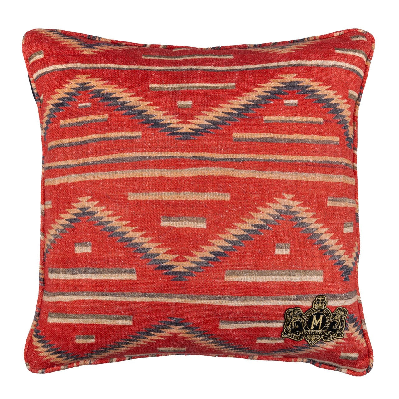 An outstanding designer cushion made of stonewashed heavy linen showing a beautiful pattern of an original Navajo woven carpet. Finished with assorted piping and come with 100% duck feathers filling.