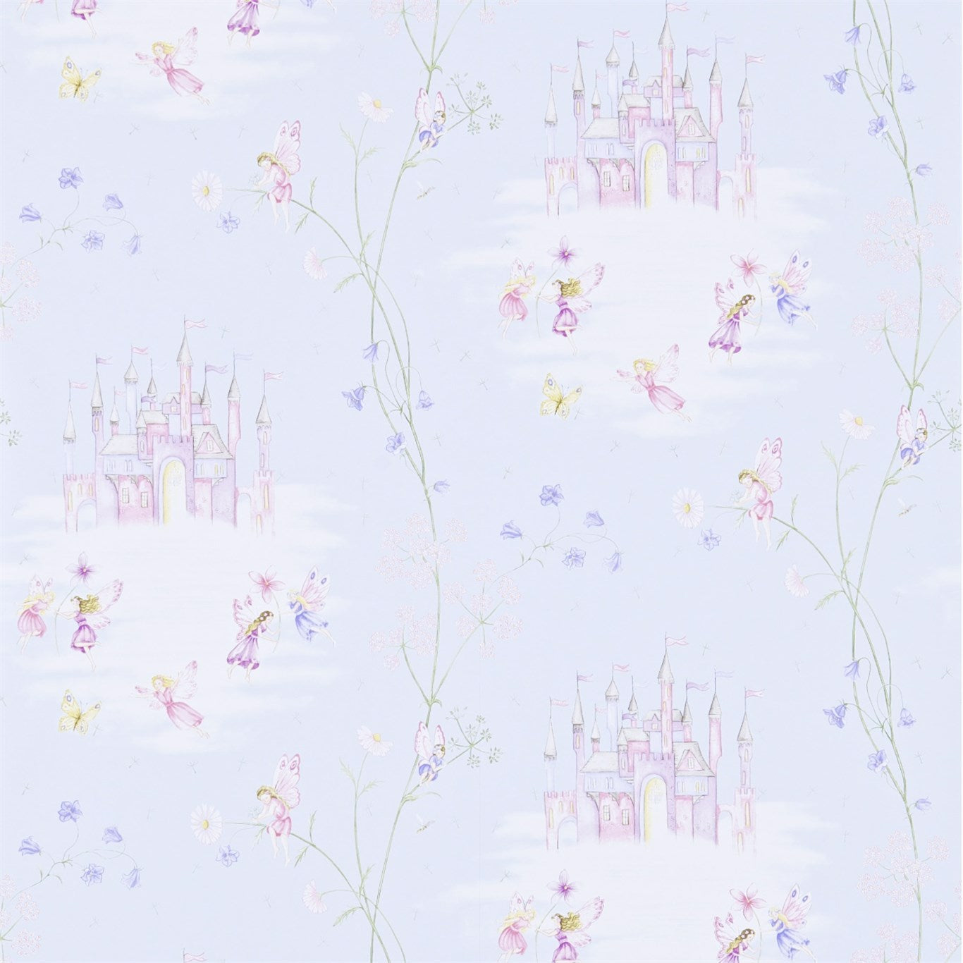 Fairy Castle Wallpaper by Sanderson features dreamy castle turrets floating among the clouds, creating a magical fantasy scene. The imaginative design brings a soft sense of wonder and storytelling to interior spaces.