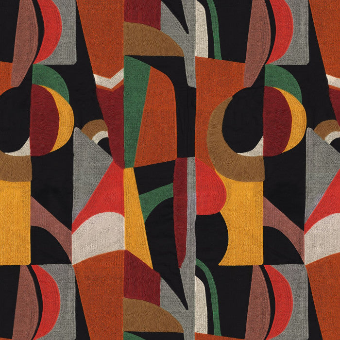 A creation with unusual strength, its power comes from the shape, the colour and the material. Fascination has a magnetic attraction thanks to its oversized patterns, the refinement of its shades and the contrast between its textures. If the geometric designs are created in the weave, the shapes seem to have been cut and then manually repositioned on the cotton satin. Some are over-embroidered, with a myriad of yarns and different stitches. Structured, highlighted with matte or lustrous yarns, the shapes gently catch the light and give the fabric a vibrant finish. Designed for curtains, Fascination is available in four colours.