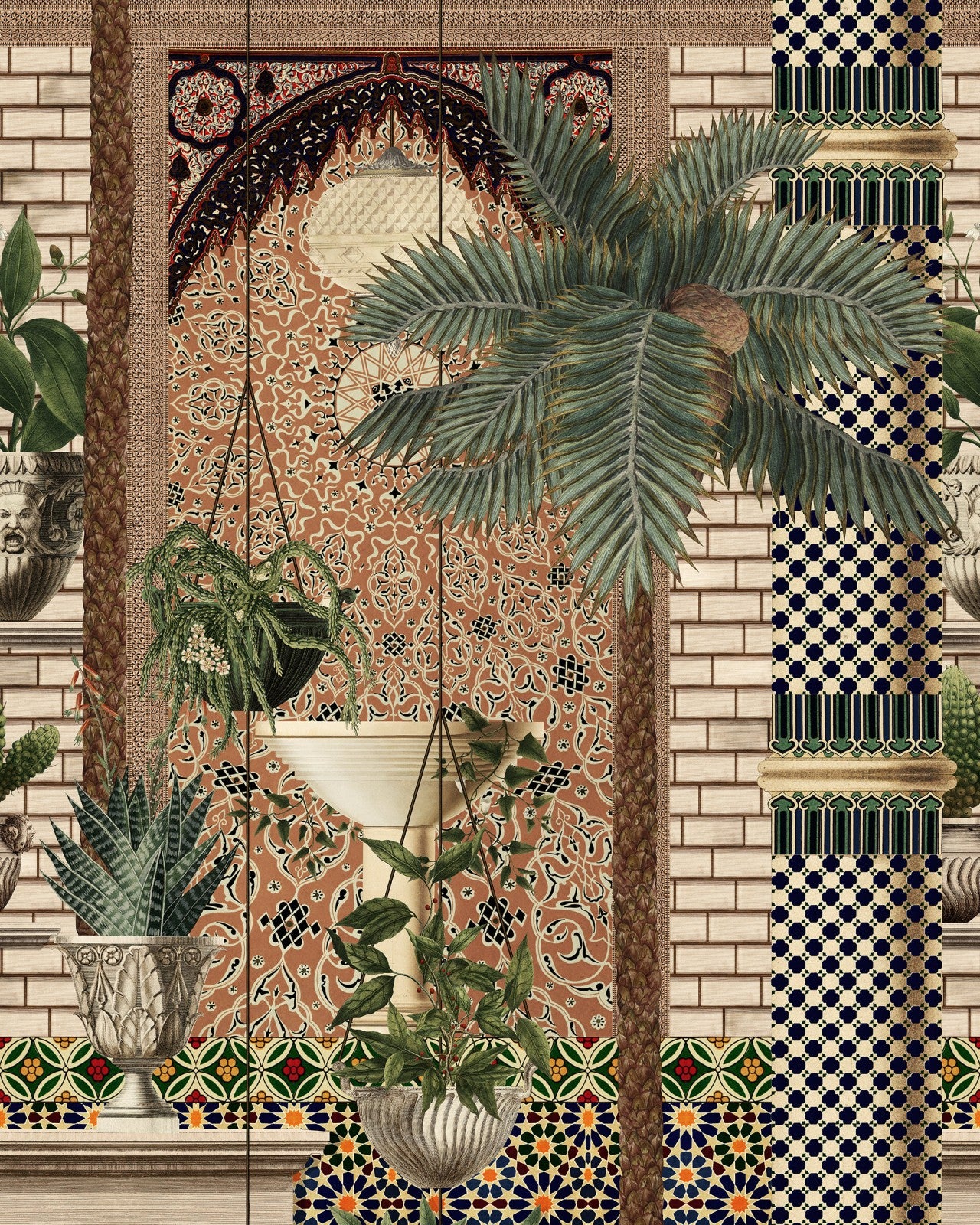 Find yourself absorbed in the ancient walled medina of Fez, where beauty abounds with dazzling, hand-painted coloured tiles bringing the walls to life. Hanging foliage and structured palms create a small oasis as the hustle and bustle of nearby vendors echo through the warm Moroccan air alongside the scent of spices and perfume which envelops you. An unforgettable sensory experience. Showcasing the beauty of the region’s heritage of ceramic craft, the FEZ MEDINA print brings a unique charm to the home.