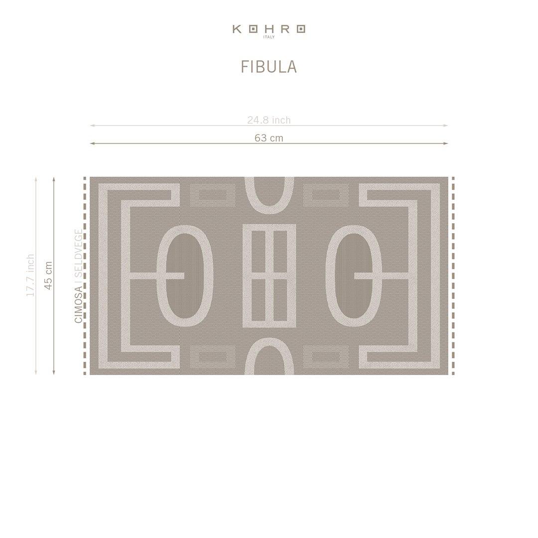 The fabric type of Fibula is jacquard, known for its intricate woven patterns and durability. The geometric design of Fibula features squares and textures, adding visual interest and a contemporary flair to any space.